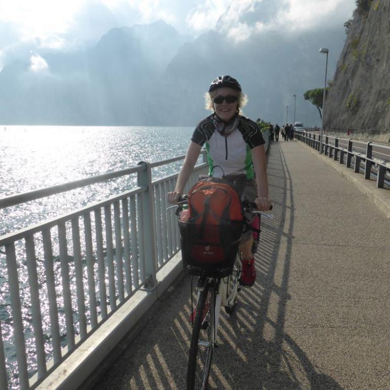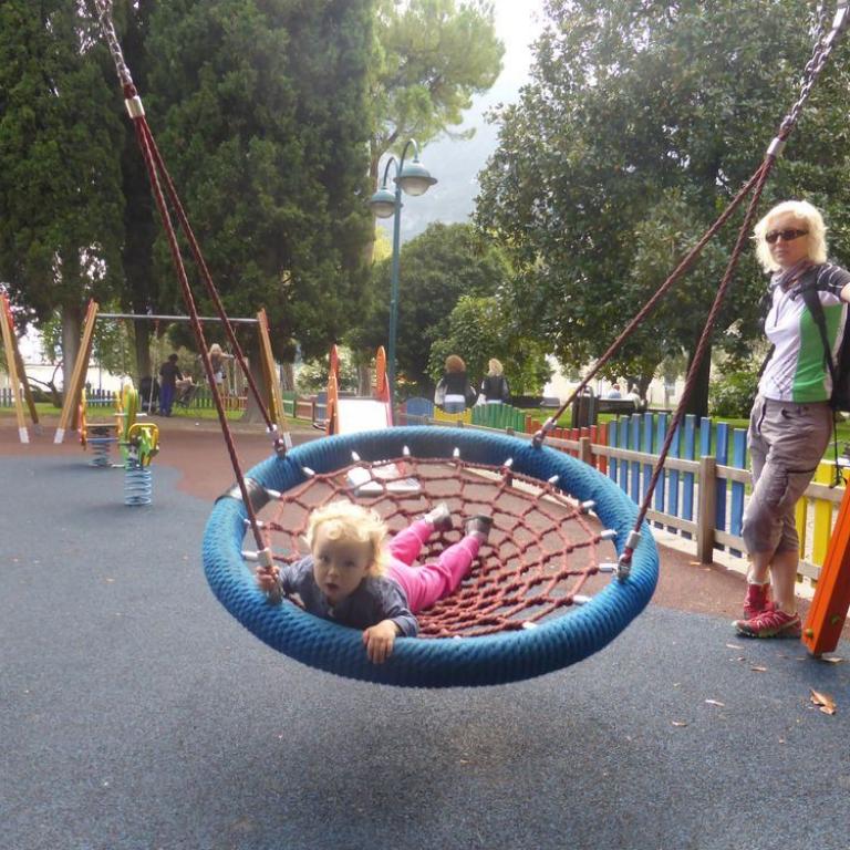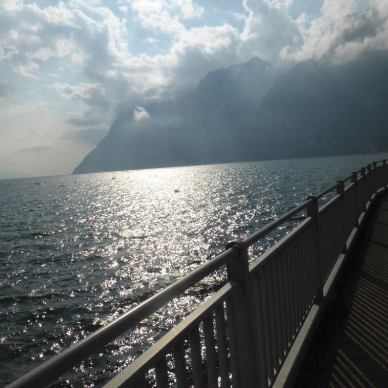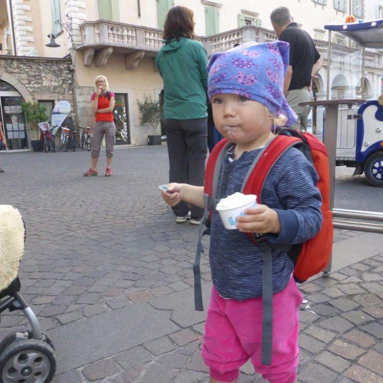 Auch heute begann der Tag für uns stressfrei :-) Frühstück und spielen mit Emma. Da es leicht regnete beschlossen wir nicht mit zum Klettern zu fahren. Wäre für Emma kein Spaß. Mittag legten wir uns fast 2 Stunden in die Federn. Auch das war mal entspannend. Aber dann musste Action her :-) Mit dem Rad fuhren wir bei Sonnenschein nach Riva del Garda. Hier fanden wir natürlich einen Spielplatz und ein Eis für Emma :-)