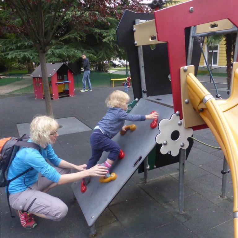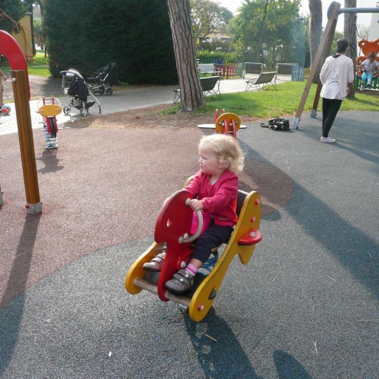 Wir standen schon um 6 Uhr auf, da unser kleiner Käfer schon ausgeschlafen war. In unserem Appartement bereitete Brigitte ein leckeres Frühstück zu. Natürlich begutachteten wir gleich danach den kleinen Spielplatz der zur Anlage gehört.