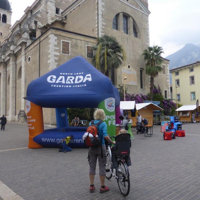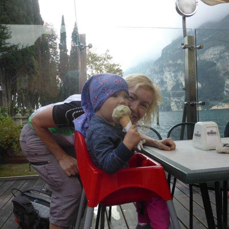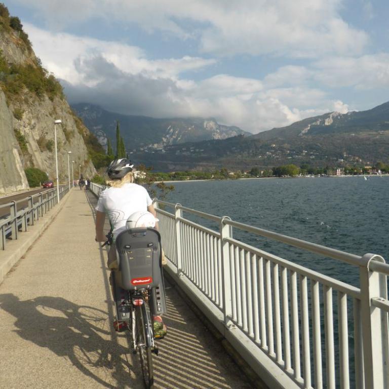Auch heute begann der Tag für uns stressfrei :-) Frühstück und spielen mit Emma. Da es leicht regnete beschlossen wir nicht mit zum Klettern zu fahren. Wäre für Emma kein Spaß. Mittag legten wir uns fast 2 Stunden in die Federn. Auch das war mal entspannend. Aber dann musste Action her :-) Mit dem Rad fuhren wir bei Sonnenschein nach Riva del Garda. Hier fanden wir natürlich einen Spielplatz und ein Eis für Emma :-)