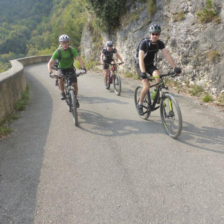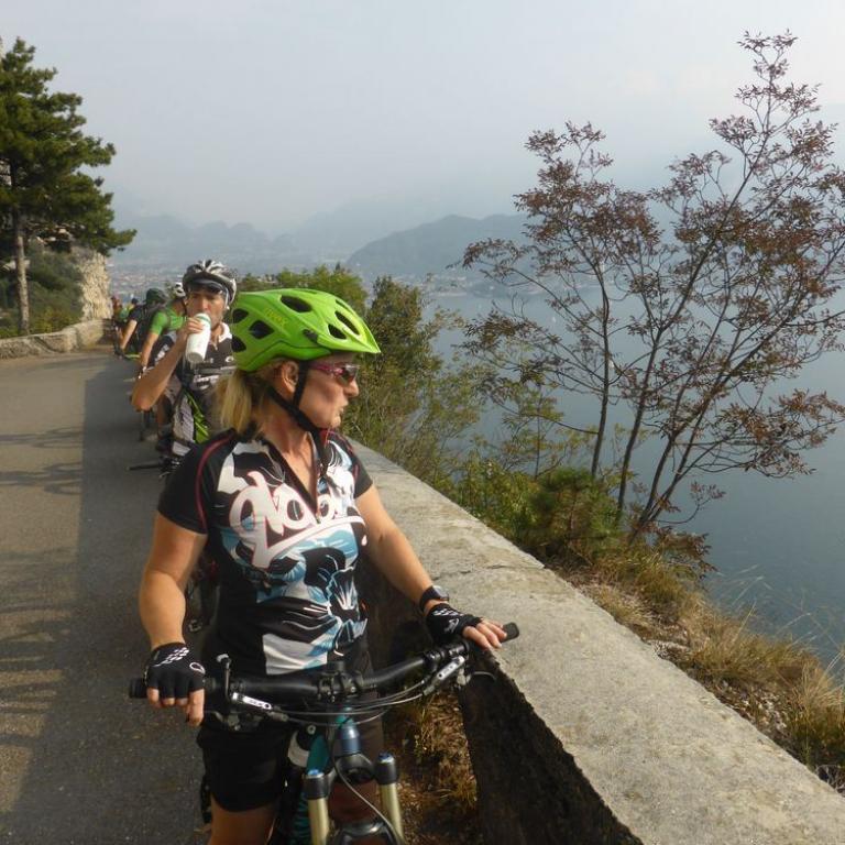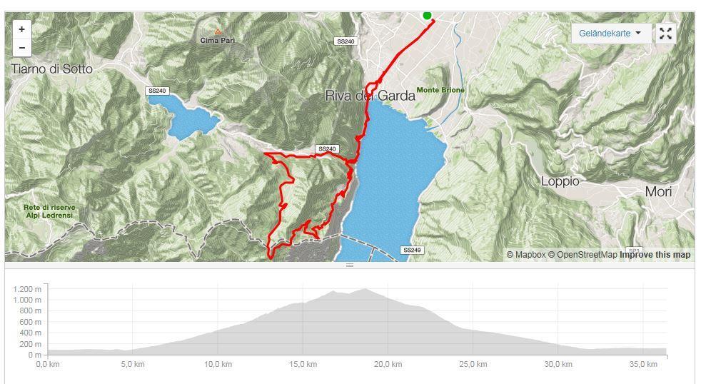 Auch heute ließen wir Tag gemütlich beginnen. Erst um 7 Uhr rollten wir aus den Federn und frühstückten. Um halb 10 Uhr wurde ich von der MTB Gruppe des Alpenvereins Straubing abgeholt. Der AV war wie immer in Padaro, 300 Höhenmeter oberhalb Arcos, bei der Anna-Maria untergebracht. Die restlichen ca. 20 Mitglieder gingen zum Klettern. Brigitte fuhr mit Emma nach Riva del Garda um einen Spielplatz zu suchen und wir drückten als erstes die Ponale hoch. Von dort nach Pregasina, wo wir uns eine Radler genehmigten. Weiter kämpften wir uns einen steilen Singletrail zum Passo Rocchetta 1159 m hoch. Hier ging es dann wellig weiter, bis wir in Richtung Ledrosee nach unten abbogen. Steile, zum Teil geteerte Forststraßen sausten wir bis zur neuen Ponale Bar nach unten. Hier kehrten wir kurz ein und genossen die Aussicht und Sonne. In Riva fanden wir noch eine Eisdiele :-) bevor es zu meinen zwei Mädels zurück ging.