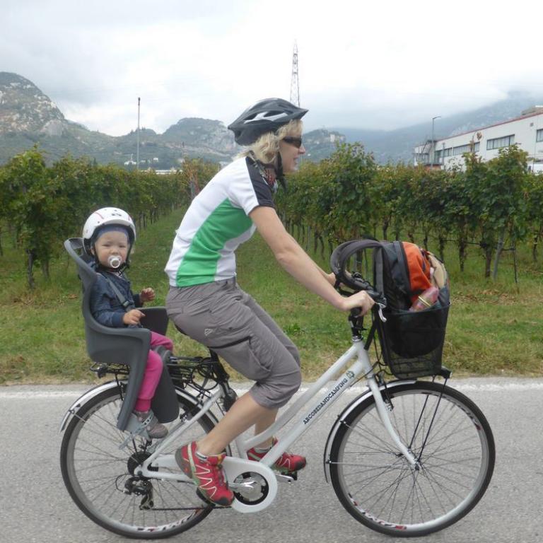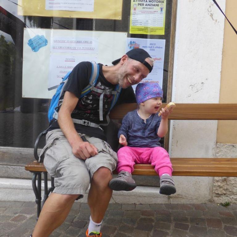 Nach einer wohltuenden Dusche fuhren wir noch mit dem Rad nach Arco. Brigitte testete ein Leihrad von der Unterkunft mit Kindersitz und ich nahm das MTB. Wir fuhren noch bis in die Altstadt von Arco um nochmals einen Spielplatz für Emma zu suchen :-) Den Abend ließen wir gemütlich auf der Couch ausklingen...