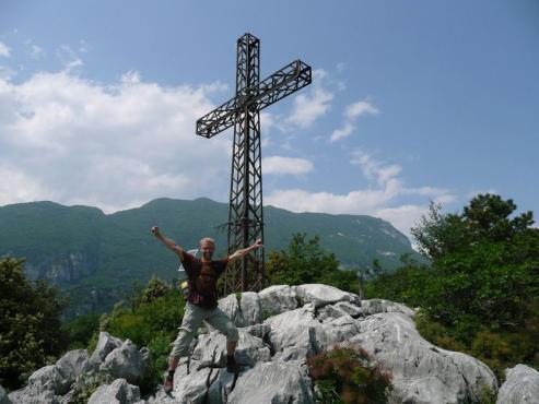 Wir fuhren nach einem erholsamen Vormittag am Gardasee nach Arco und parkten unser Auto am Schwimmbad des Campingplatzes. Von hier sieht man schon den Einstieg des Klettersteiges. Wir wanderten 15 Minuten auf einem Pfad bis wir am Einstieg unsere Klettersteigausrüstung anlegten. Der Steig ist bestens gesichert. Mit Klettersteig und Bergerfahrung ist die Ausrüstung nicht notwendig. Steil ging es nach oben und die Sonne erhitzte die Luft schon sehr. Wir hatten immer eine wunderbare Aussicht auf Arco und die gegenüberliegenden Berge. Nach ca. einer, schweißtreibenden Stunde erreichten wir dann den Austieg. Von hier hatten wir noch 15 Minuten bis zum Gipfel des Colodri, natürlich mit Gipfelkreuz. Wir hatten einen herrlichen Rundblick. Im Süden den Gardasee und im Norden, Osten und Westen eine wunderschöne Bergwelt. Auf dem Normalweg, vorbei an einer kleinen Kirche, weiter zur Burg, durch Olivenhaine, wanderten wir zurück nach Arco und zum Parkplatz.