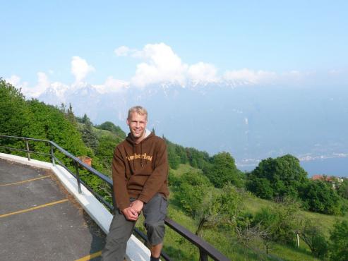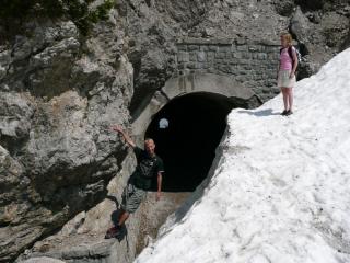 Es lag noch einiges an Schnee. Viele Biker wollten auch den Gebirgszug überqueren mussten aber wegen dem Schnee teilweise schieben. Wir wanderten bis auf 1800 Meter hoch und durchquerten den höchsten Punkt durch ein Tunnel. Auf der anderen Seite würde es über die Südflanke wieder abwärts zum Lago di Ledro oder Limone gehen. Wir kehrten wieder um und wanderten bis zum Parkplatz. Da wir die Mountainbikes im Auto hatten, fuhr ich mit dem Bike den Pass hinunter. Die Fahrt war super klasse, nur hatte ich leider meinen Helm im Hotel liegen lassen. Unbeschadet kam ich unten wieder an. Wir fuhren noch zum Ledrosee wo wir uns noch in die Sonne legten und ein Buch lasen. Nach einem kurzem Abstecher nach Limone machten wir uns wieder auf den Weg zum Hotel in Tignale. Hier fanden wir noch ein super schönes Restaurant mit herrlicher Aussicht auf den Gardasee.