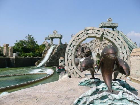Gleich nach dem Frühstück fuhren wir mit dem Auto wieder über die abenteuerliche Bergstraße an den Gardasee. Von hier weiter südlich nach Maderno. Um 10 Uhr setzten wir mit der Fähre an die Ostküste über. Nach weiteren 30 Minuten Fahrt erreichten wir dann in der Nähe von Peschiera den Freizeitpark Gardaland. Dieser konnte sich mit den amerikanischen Parks messen. Es gab viele Attraktionen wie Achterbahnen (Magic Mountain), Blue Tornado (eine Achterbahn der letzten Generation , auf der man freischwebend wie in einem Jagdflugzeug fliegt) Wasserspaß (Jungle Rapids, Tunga) und Fuga da Atlantide ( Diese Attraktion, die sich über ein Gebiet von etwa 10.000 qm ausdehnt, besteht in einer 700 Meter langen Strecke in Booten mit 20 Personen in einem Ambiente, dem die mysteriöse Welt von Atlantis das Gepräge gegeben hat, durch geheimnisvolle Tunnel hindurch und und das ist das ganz Besondere mit zwei aus der Höhe im Doppelfall abstürzenden Wasserfällen (10 m und 15 m Höhe), was diese Strecke zu dem höchsten Wassersprung von Europa macht) aber natürlich auch Fahrgeschäfte für die Kleinen.