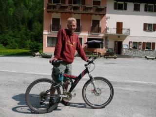 Nach dem Frühstück fuhren wir mit dem Mountainbike vom Hotel aus, weiter den Berg hinauf in Richtung Rifugio Cima Piemp. Leider fanden wir nur den Wanderweg und mussten teilweise unsere Bikes schieben. Wir hatten aber eine herrliche Aussicht über den Gardasee. Das Wetter war klasse mit Sonne und blauem Himmel. Über Schotterstraßen fuhren wir von ca. 1000 Höhenmeter wieder abwärts. Kurvenreich ging es wieder zurück in die Ortschaft. Dort kauften wir Tomaten, Käse und Brot für das Mittagessen.