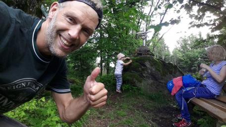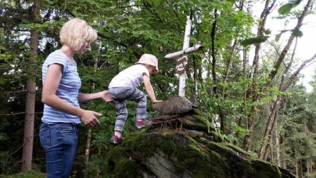 Bei herrlichem Sonnenschein wanderten wir ab der Walfahrtskirche Hl. Kreuz zum Buchaberggipfel 593 m, wo wir am Gipfel kurz Rast machten und die Ruhe und Stille des Waldes genossen. Emma übte sich im Klettern auf den Gipfelfelsen...