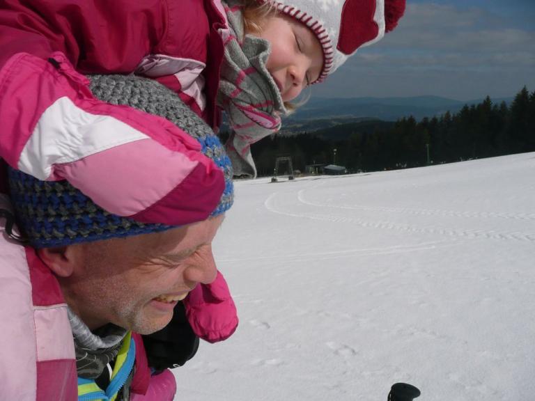 Heute stand ein Papa Tochter Ausflug bei Traumwetter auf dem Programm. Mit den Tourenski unter den Füßen und Emma auf der Schulter stiegen wir zum Gipfel des Predigtstuhls 1024 m. Am Gipfel gab es eine leckere Brotzeit bei herrlichem Sonnenschein. Die Abfahrt machte der kleinen Maus sehr viel Spaß. Wir hatten perfekten Powder. Schön war es :-) Danach besuchten wir noch das Xperium in Sankt Englmar, wo spielerisch die Physik, Mathematik und noch vieles mehr erklärt wurde. Auch hier hatten wir beide viel Spaß. Brigitte war währenddessen mit ihrem Bruder am Bretterschachten bei top Bedingungen und ebenfalls Traumwetter beim Langlaufen :-)