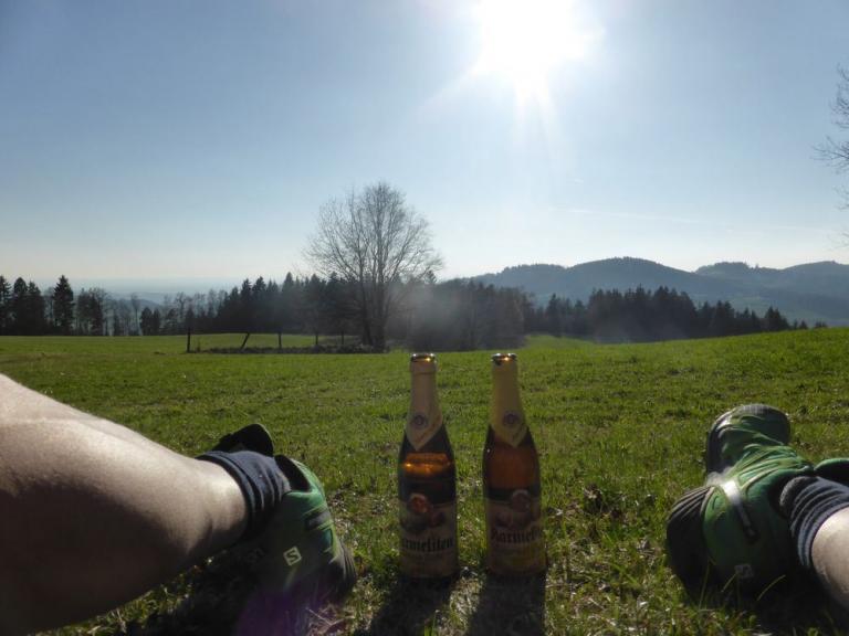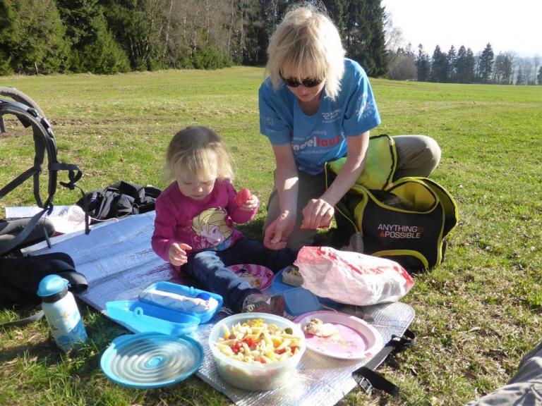 Gleich nach Feierabend fuhren Brigitte, Emma und ich nach Perasdorf. Hier wanderten wir über den Kreuzweg auf den 595 m hohen Schellnberg. Brigitte hatte alles für ein leckeres Picknick dabei. Nudelsalat, Semmeln, Wurst, Eier und natürlich ein Goldköpferl :-) Wir besuchten dann noch meinen Arbeitskollegen Werner und seine Familie, der am Fuße des Schellnberg wohnt. Hier bekamen wir ein Weißbier und Emma eine leckere Traubensaftschorle, bevor wir uns wieder auf den Weg zum Auto machten :-)