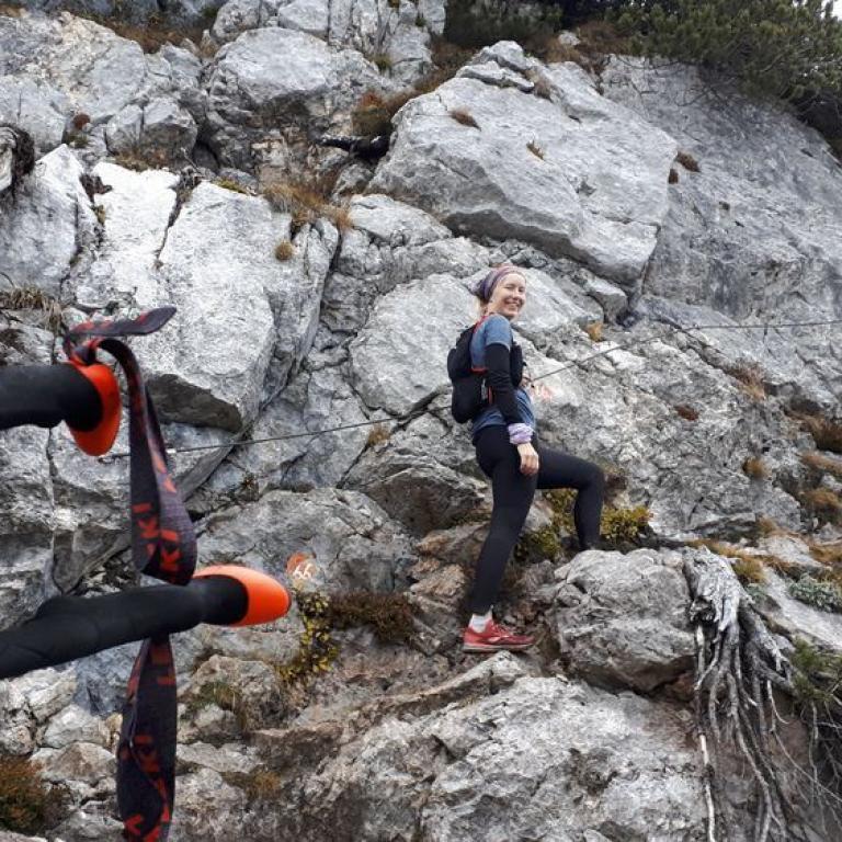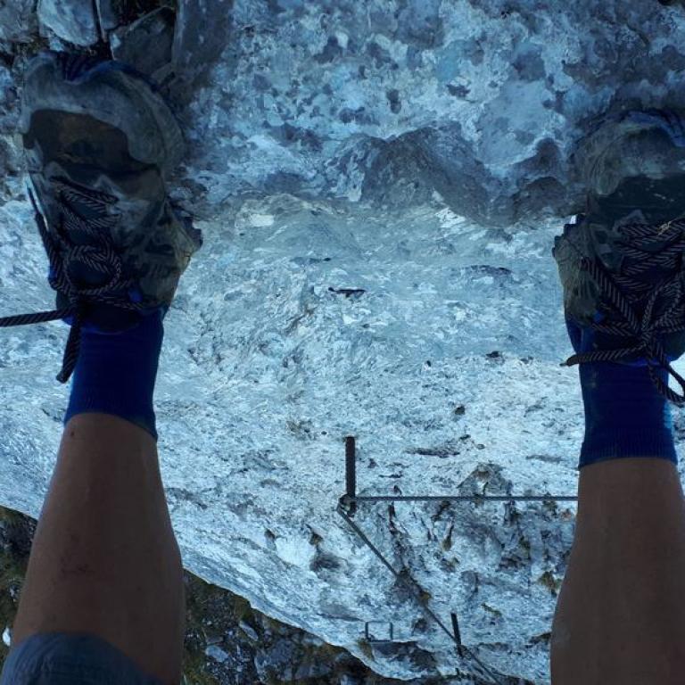 Da am Sonntag der schönste Tag der Woche werden sollte, musste eine coole Berg oder Klettertour gefunden werden. Da das Berchtesgadener Land dank zu hoher Corona Virus Zahlen einem Lockdown unterlag und deshalb sämtliche Wanderparkplätze gesperrt waren, fielen viele Touren schon mal flach. In den Chiemgauer gab es leider nur wenig anspruchsvolle Klettersteige. Aber ich recherchierte etwas und entschied mich trotzdem für eine Berchtesgadener Tour, den Pidinger Klettersteig. Es gab die Möglichkeit ab Inzell, Adlgaß zum Einstieg zu kommen. Und Inzell liegt im Landkreis Traunstein, somit kein Lockdown Gebiet. Gesagt getan, am Morgen fuhren wir zum Wanderparkplatz in Adlgaß. Hier folgten wir dem Wegweiser bis zur Steineralm an der Nordseite des Hochstaufens. Nach ca. 1 Stunde erreichten wir die dank Corona Maßnahmen, geschlossene, Alm. Von hier waren es nur noch eine Viertelstunde bis zum Einstieg. Trotz Traumwetter waren wir völlig allein in dem anspruchsvollen Steig. Der Corona Virus hatte auch einmal was Gutes, da deshalb der Parkplatz in Urwies gesperrt war und keiner zum Steig kam. Da ich zum 10. Mal den Pidinger bezwingen wollte, kannte ich jede Passage schon fast auswendig :-) Aber auch heute machte es wieder riesig Spaß die steilen Nordwände des Hochstaufens zu erklettern. Nach der schwierigen Einstiegswand mussten wir durch Latschen und loses Gestein weiter nach oben kraxeln. Eine weitere steile Wand mit der ein oder anderen D-Stelle führte uns senkrecht nach oben. Wir querten nach links um den neu trassierten Seitwärtsteil zu erreichen. Kurz vor der finalen Wand machten wir, wie jedes Mal, Brotzeit auf einer kleinen Bank, um gestärkt die die letzten Felsen zu erklimmen. Langsam ging die Armkraft zu neige, aber wir kämpften uns weiter durch die vielen C und D Stellen bis wir nach 3 Stunden im Klettersteig den Ausstieg erreichten. Natürlich wanderten wir noch zum Gipfel des Hochstaufens (1771 m) um die Aussicht zu genießen. Dieser war restlos überfüllt, aber ein kleines Plätzchen fanden wir dann doch noch. Bergab liefen wir mehr, als wir gingen und brachten deshalb die 1300 Hm in knapp über 1 Stunde hinter uns. Insgesamt waren wir 6h 20 min auf 17 Kilometer und 1300 Höhenmetern unterwegs, bevor wir die Heimreise zu unseren Kindern antraten