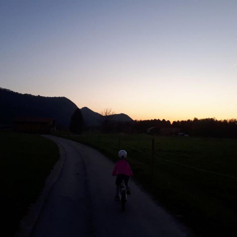 Gleich nach der Arbeit fuhren wir auch schon los. Den Caddy hatte ich schon am Mittwoch vollbepackt. Die Wettervorhersage für das Osterwochenende sah vielversprechend aus. Sonne und über 20 Grad. Dank mehrerer Umleitungen erreichten wir Grassau erst gegen 19 Uhr. Wir packen alles aus und füllten die kleine Wohnung mit Leben :-) Emma und ich fuhren noch eine kleine Golfplatzrunde mit dem MTB, bevor es Abendessen gab. Kaputt fielen wir dann in die Betten.