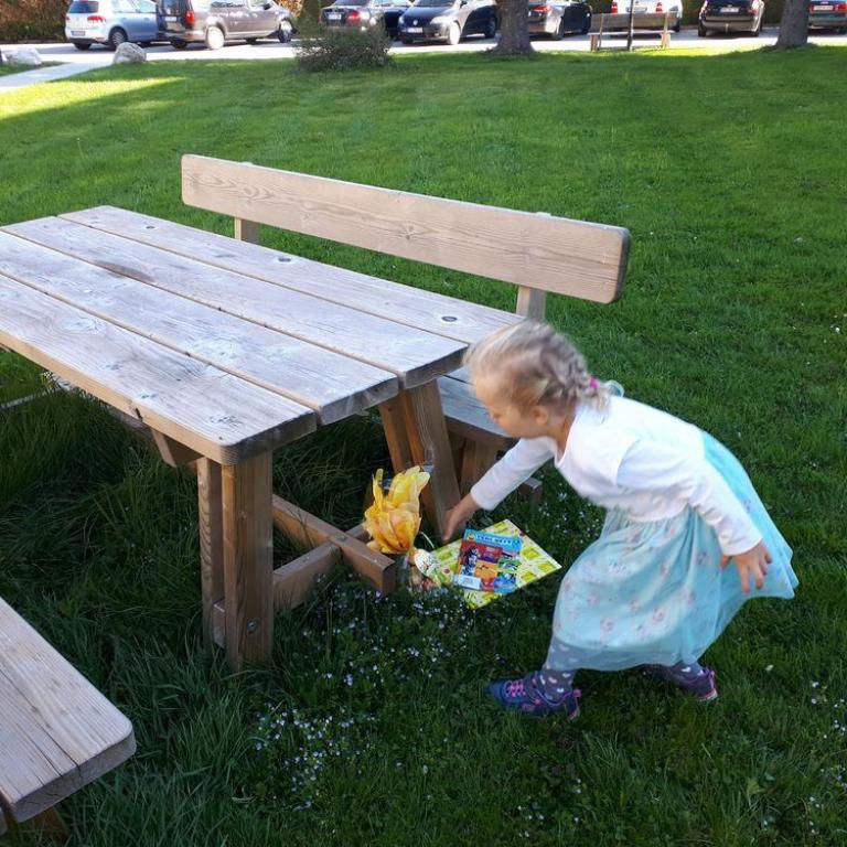 Ostern in Grassau :-) Brigitte fuhr mit den Kindern zum Bäcker, während ich den Osterhasen spielte. Emma und Timi suchten begeistert ihre Nester. Nach dem Frühstück fuhren wir dann nach Marquartstein in den Märchenpark. Wie immer machte der liebevolle Park viel Spaß. Es waren Plastikostereier versteckt, die wir fleißig suchten. Insgesamt fanden wir 21 Stück, die wir gegen Gummibärchen und Luftballons eintauschen konnten. Später ging es noch an den Reifinger See, wo wir im Seerestaurant eine Kleinigkeit zu Mittag aßen. Später schauten wir noch beim Ostereiersuchen im Grassauer Park vorbei, bevor wir in der Wohnung ein kleines Nachmittagsschläfchen hielten. Am Abend liefen wir noch eine Golfplatzrunde mit Babyjogger und Emma fuhr mit dem Mountainbike. Leider baute Emma auf der 400 m Bahn um den Fußballplatz einen Crash mit dem MTB, bei dem sie aber glücklicherweise mit ein paar blauen Flecken davon kam. Bei unserem Rennen auf der 400 m Bahn sauste sie Vollgas in eine Trainerbank :-) Gut das sie einen Helm auf hatte