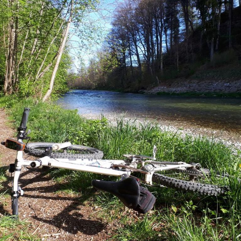 Da sich meine Radkilometer in diesem Jahr in Grenzen hielten und der Ironman Frankfurt immer näher rückte, musste eine lange Radeinheit her. Da bot sich natürlich eine MTB Tour von den Chiemgauer Bergen in den Gäuboden an :-) Das MTB hatte ich ja dabei und Brigitte schaffte es auch ohne mich mit den Kindern nach Hause zu fahren. Ich half Brigitte noch beim Packen und startete dann mit dem MTB in Richtung Chiemsee. Zuerst folgte ich auf meinem Garmin, den von mir erstellten MTB Tracks, musste aber bei Trostberg an der Alz feststellen, dass ich bei dieser Geschwindigkeit heute nicht mehr nach Hause kommen würde :-) Die Route war super schön und die Singletrails machten Spaß, aber teilweise gab es Tragestrecken, Bäume am Weg und pfiffige Abschnitte, so dass ich nicht unbedingt schnell Vorwärts kam. Der extreme Gegenwind machte es auch nicht wirklich besser :-) Ich entschied mich auf den Rennradtrack umzuschalten. Nach 10 Zusatzkilometern war ich dann auf dem Straßentrack und fuhr nach Altötting und weiter bis Dingolfing. Mein Ziel war Leiblfing, da Brigitte mit den Kindern beim Ostereiersuchen bei meiner Schwiegermama war. Nach 155 km 2000 Höhenmeter und knapp über 8 Stunden erreichte ich dann doch etwas kaputt meine Familie. Ein langer Tag am Rad und eine schöne Zeit in Grassau ging zu Ende :-)