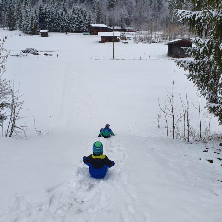 Zuerst wanderten wir durch die Winterlandschaft über Wiesen und kleine Wege bis zu den Weitseen. Auch eine Schneeballschlacht durfte nicht fehlen. Da so eine Wanderung Hunger macht, kehrten wir in der gemütlichen Alm ein und wurden sehr freundlich empfangen. Nach einer Nudelsuppe und Kaba hatten wir wieder genügend Energie für neue Taten...