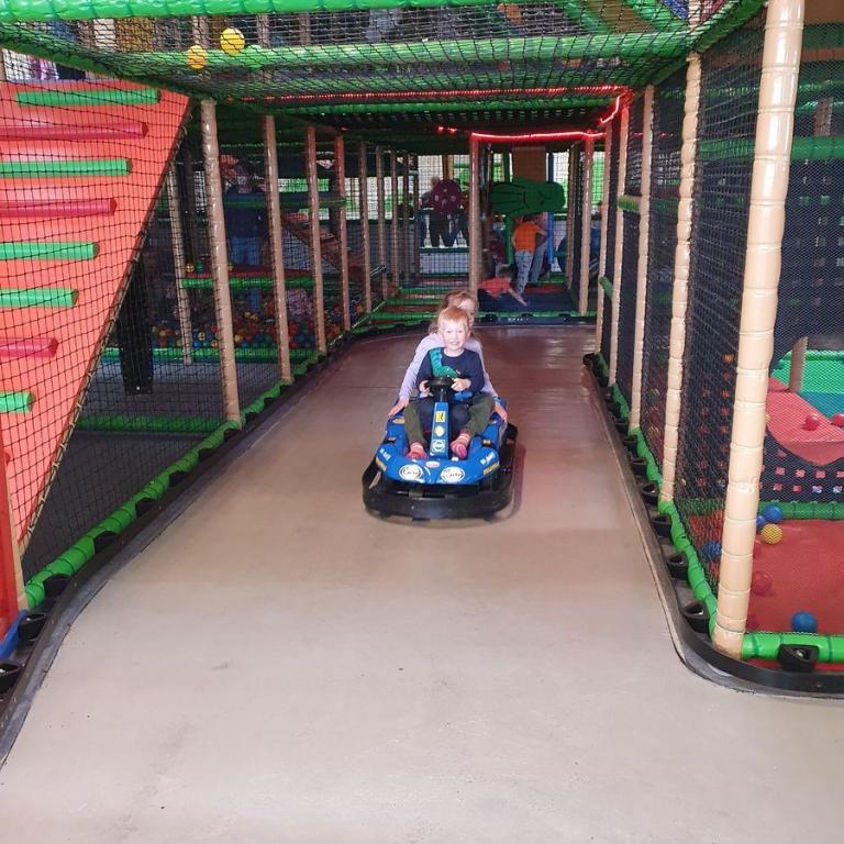 Die Kinder sausten von Klettergerüst zur Kartbahn und wieder zurück. Die beiden Mäuse hatten riesig Spaß, auch wenn der Indoor Spielplatz aus allen Nähten platzte.