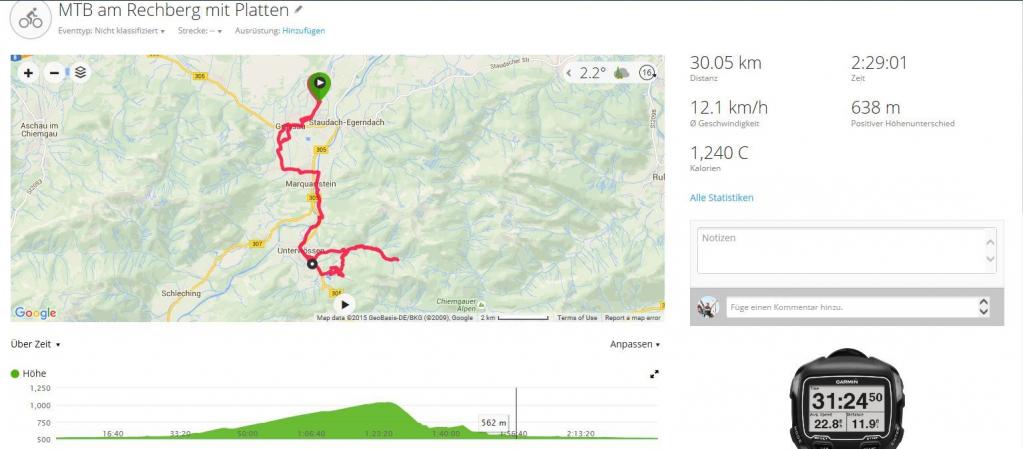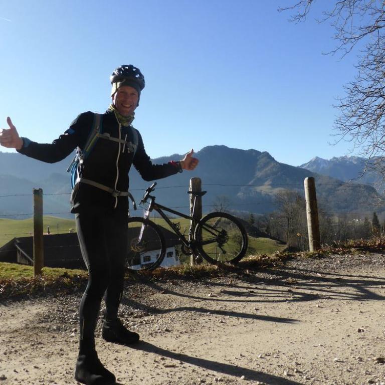 Auch am 4. Tag in Grassau war das Wetter wieder herrlichst. Sonne und blauer Himmel, aber kühle - 3 Grad. Aber mit der richtigen Kleidung kein Problem zum MTB. Emma und Brigitte gingen am Vormittag eine Grassaurunde und ich startete mit dem Leih-MTB. Zuerst fuhr ich an der Tiroler Ache bis nach Unterwössen. Hier ging es nach oben. Mein Ziel waren eigentlich die Jochbergalmen, aber leider nahm ich beim 50:50 Joker den falschen Weg. Selber schuld da ich zu faul war auf die Karte zu schauen. Ich fuhr zuerst einen steilen Forstweg nach oben, aus dem dann ein steiniger, steiler Trail wurde. Die Strecke führte mich aber immer sehr idyllisch an einem Bach entlang. Nach 600 Höhenmetern ging dann fahrtechnisch nichts mehr und schieben bzw. tragen wollte ich auch nicht. Laut Karte war ich ca. 1 Stunde Schiebestrecke von den Jochbergalmen entfernt am Rechberg auf ca. 1100 Hm. Also fuhr ich den gleichen Weg wieder bergab. Kurz vor Unterwössen fand ich einen coolen Trail bis zum Wössener See. Leider hatte ich auf dem Weg dort hin eine Reifenpanne. Mit neuem Schlauch fuhr ich dann wieder in Richtung Grassau. Dort tauschte ich mit Brigitte. Ich bekam Emma und sie das Mountainbike :-) Wir setzten uns gleich mal in die Badewanne, während Brigitte eine ähnliche Runde fuhr. Am Abend brachte ich dann das Bike wieder zum Radshop und lief in die Wohnung zurück....