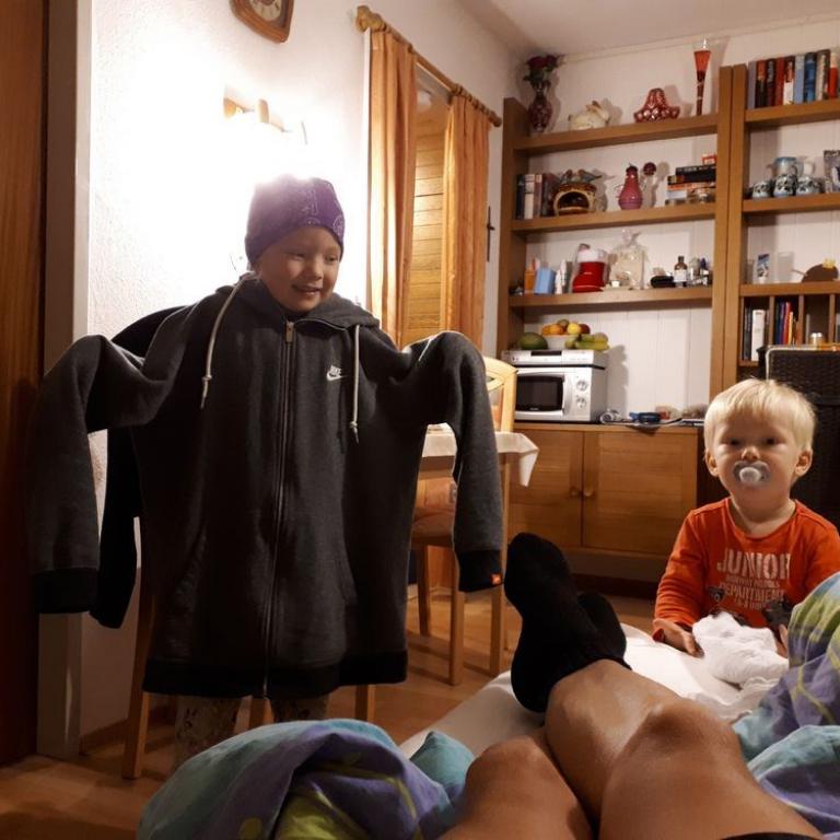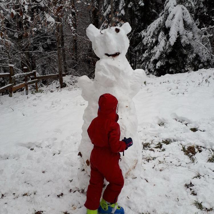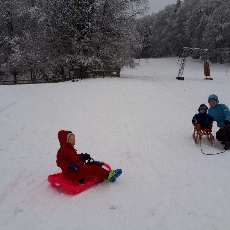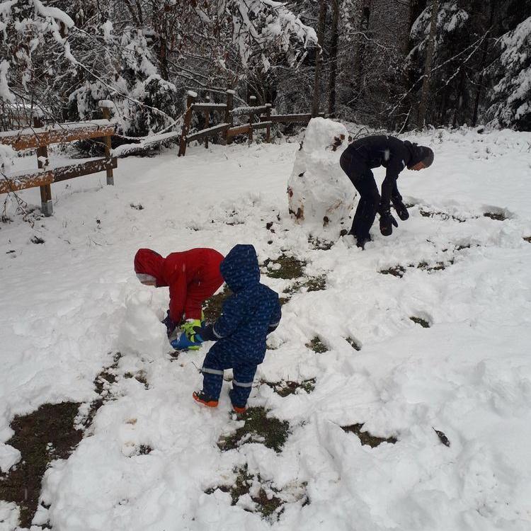 Das Wetter war leider regnerisch und nass. Trotzdem fuhren wir nach Sachrang. In Grassau lag kein Schnee, aber je höher wir kamen, desto weißer und winterlicher wurde es. Der Regen ging in Schnee über und im, auf 800 Hm liegenden Sachrang, fanden wir ein Winterwonderland vor. Wir packten am Parkplatz des kleinen Skigebietes "Kaiserblick" die Schlitten aus und sausten die Hänge hinab. Der nasse Schnee war auch ideal zum Schneemannbauen. In der kleinen Hütte am Parkplatz kehrten wir kurz für eine Stärkung ein. Zuhause gab es eine Rumpfstabieinheit, bevor Emma und ich bei strömendem Regen nach Prien fuhren. Hier machten wir es uns im "Mikes Kino" bei dem Zeichentrickfilm "Latte Igel und der Wasserstein" gemütlich. Das nostalgische Kino ist immer einen Besuch wert. Später gingen wir noch Einkaufen und Brigitte lief noch eine Runde, bevor wir zusammen zu Abend aßen und Filme ansahen