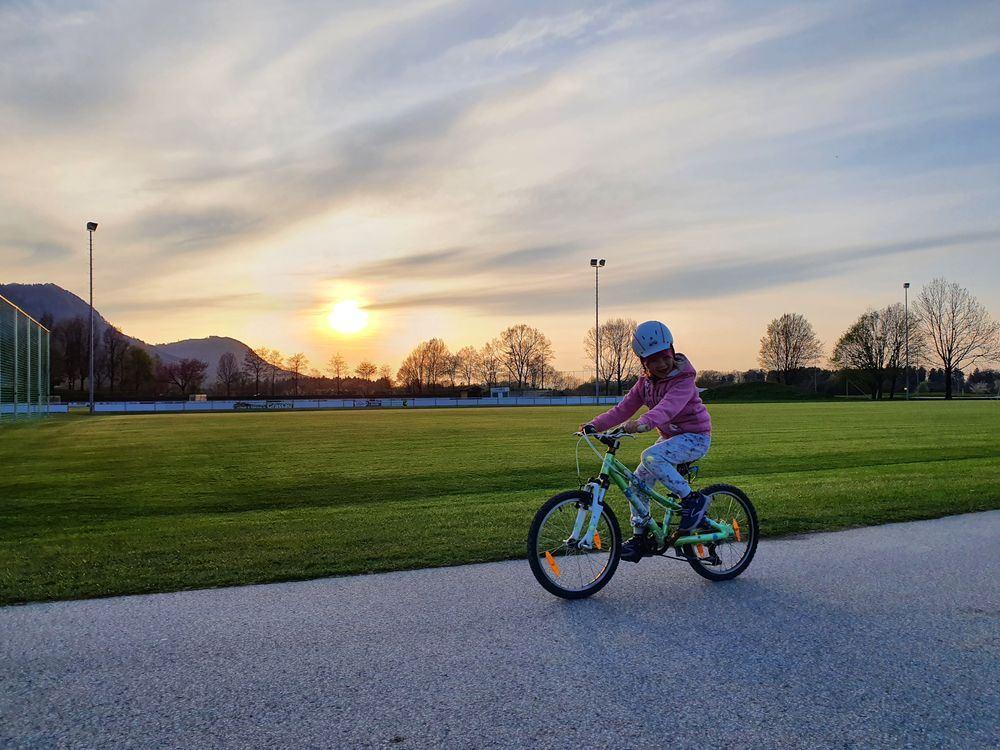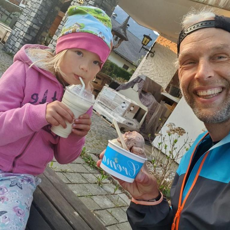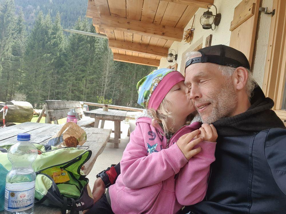 Kuschelige Tage und Action mit Emma in Grassau. Wandern, MTB, Geocache und gemütlich im Bett Filme schauen. Traumhafter Papa-Tochter Ausflug bei herrlichem Wetter in den Bergen.