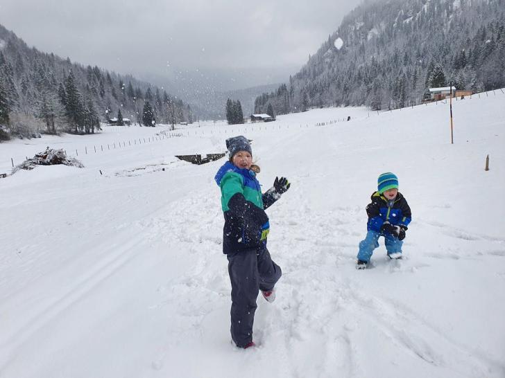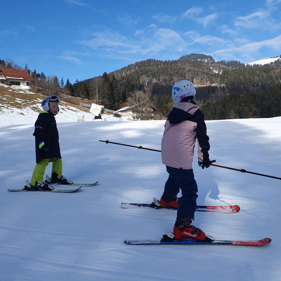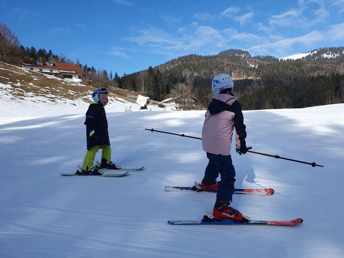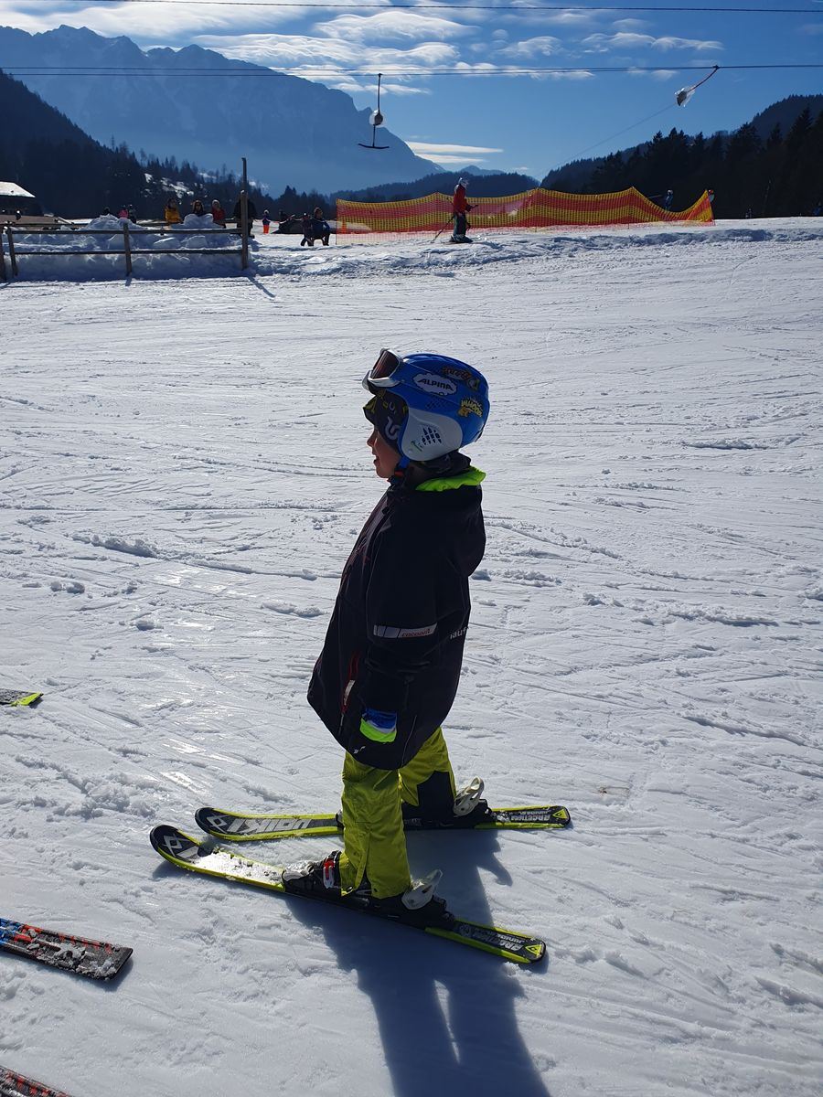 Wir schliefen fast bis 9 Uhr. Nach dem Frühstück machte Emma fleißig ihre Hausaufgaben und Timi und ich bauten mit den Legosteinen. Wir fuhren kurz vor Mittag nach Sachrang zum Skilift Kaiserblick. Da Timi letzte Woche das Schleppliftfahren im Skikurs gelernt hatte, wagten wir uns an den großen Lift und es funktionierte wunderbar. Emma fuhr allein und Timi mit mir. Wir sausten den Berg hinab was das Zeug hielt. Mein kleiner Kamikaze-Tim fuhr für ziemlich gewagt. Ein kleiner Extremsportler :-)Natürlich kehrten wir noch in der Almhütte zum Mittagessen ein, bevor wir nach Prien fuhren.