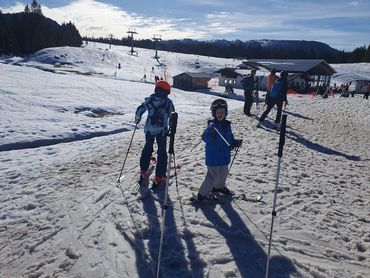 Erst nach Mittag fuhren wir somit zum Parkplatz Seegatterl, um mit der Gondel zur Winklmoosalm zu gelangen. Obwohl wir Plusgrade im zweistelligen Bereich hatten, war die Skipiste noch immer ganz gut befahrbar.