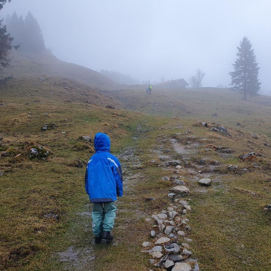 Im Herbst besuchten die Kinder und ich zum ersten Mal die gemütliche Wagneralm. Nun wollten wir auch Brigitte diese kleine Almwirtschaft zeigen. Leider hatten wir uns wettertechnisch nicht unbedingt den besten Tag ausgesucht. Wir waren die einzigen am Wanderparkplatz Gammern. Lag wahrscheinlich an dem Nieselregen und diesigem Wetter. Uns Winkls konnte dies nicht erschüttern, getreu dem Motto: Es gibt kein schlechtes Wetter, nur schlechte Kleidung.