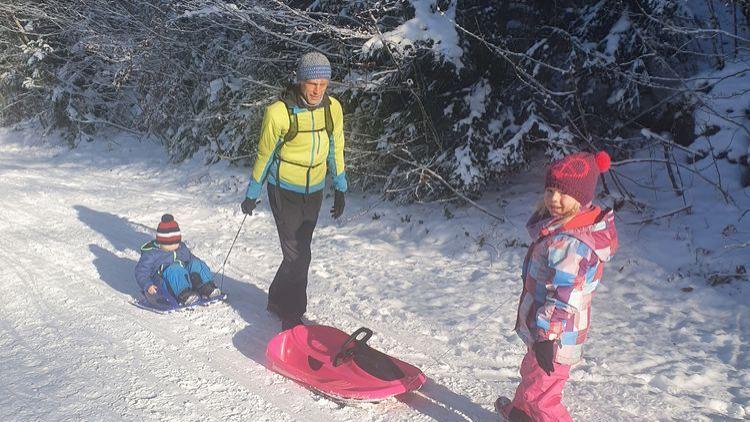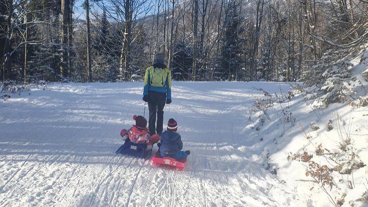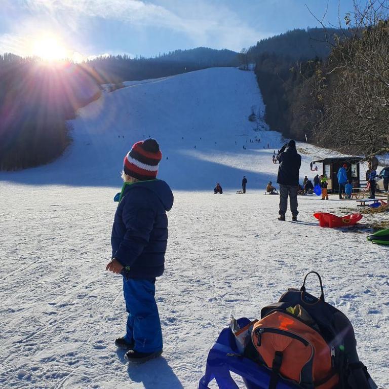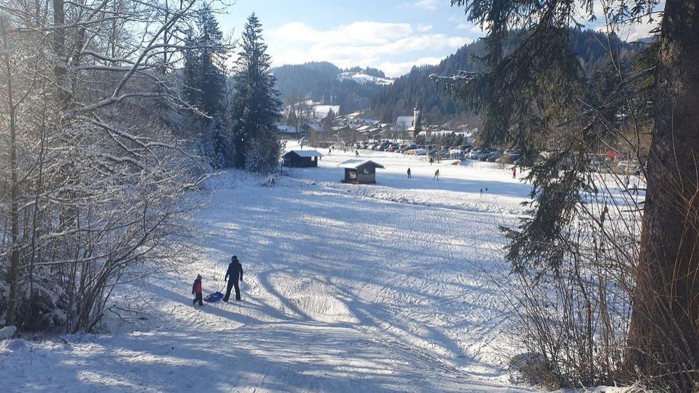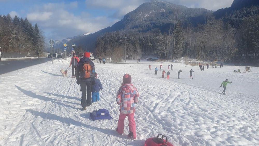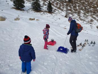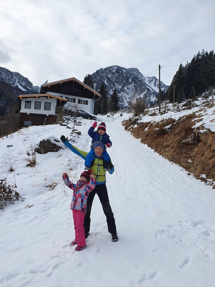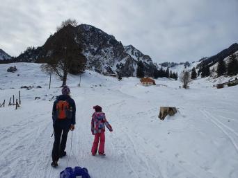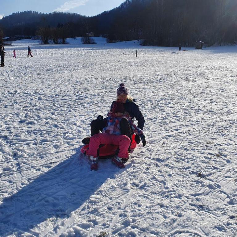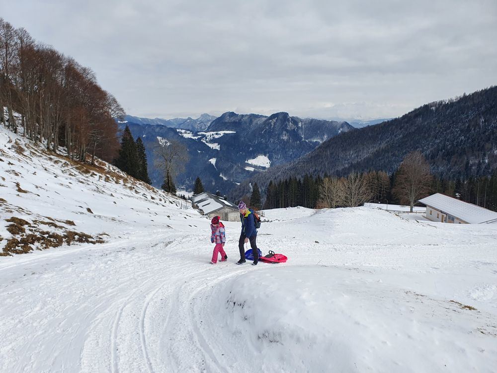 Am Abreisetag stand nochmals Schlittenfahren auf dem Programm. In Unterwössen fanden wir einen idealen Schlittenberg mit perfekten Bedingungen. Viele Male sausten wir mit rasanter Geschwindigkeit ins Tal. Den Kindern und auch Brigitte und mir machte es riesig Spaß. Am Nachmittag besuchten wir noch Freunde in Neuötting, bevor wir die endgültige Heimreise antraten.