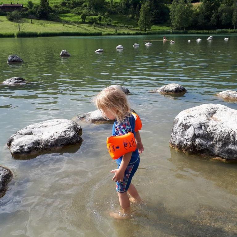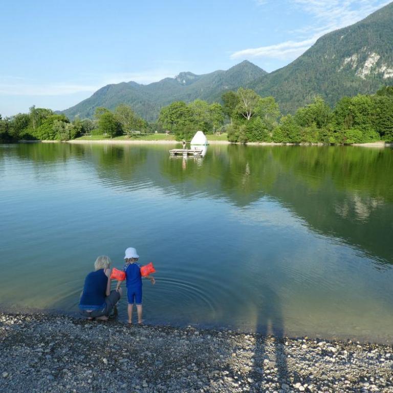 Nach unserem Gipfelerfolg fuhren wir noch zum traumhaft, gelegenen Walchsee. Hier planschten wir noch im klaren Wasser, bevor die Mäuse mit dem Auto nach Grassau zurück fuhren und ich mit dem Tribike über Sachrang zurück ballerte :-)
