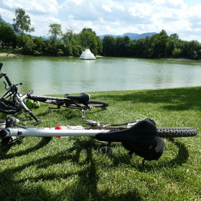 Nach dem Klettersteigabenteuer fuhren wir über die Deutsche Alpenstraße zurück nach Grassau und zum Reifinger See. Auch ein Platten in meinem Vorderrad durfte nicht fehlen. Insgesamt waren wir 52 km und 850 Höhenmeter unterwegs. Am See legten wir noch eine Schwimmeinheit ein. Auch ein Weißbier und Spritz konnten wir in der Sonne genießen :-) Am Abend gingen wir noch mit Opa und Omi zum Essen in die Grassauer Pizzeria, bevor die beiden sich wieder auf den Nachhauseweg machten.