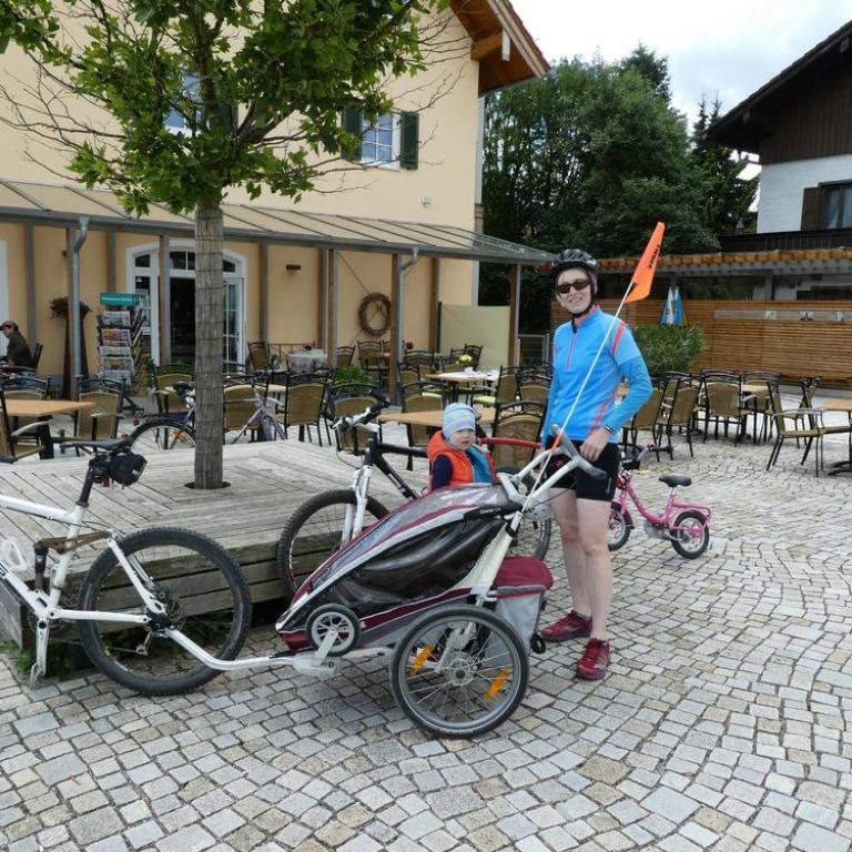 Leider kühlte es in der Nacht ziemlich ab. Das hielt mich aber nicht davon ab, eine Morgenschwimmeinheit im Reifinger See bei 13 Grad einzulegen :-) Nach dem Frühstück hatte Brigitte einkaufstechnisch etwas zu erledigen und ich spielte mit Emma. Später fuhren wir eine MTB-Moor-Golfplatzrunde mit den Zwergen im Schlepptau :-) Natürlich durfte eine Einkehr in einem nettem Cafe in Mietenkam nicht fehlen, bevor es wieder nach Hause ging.