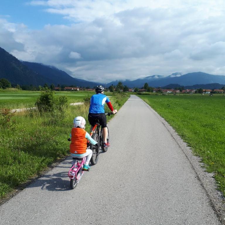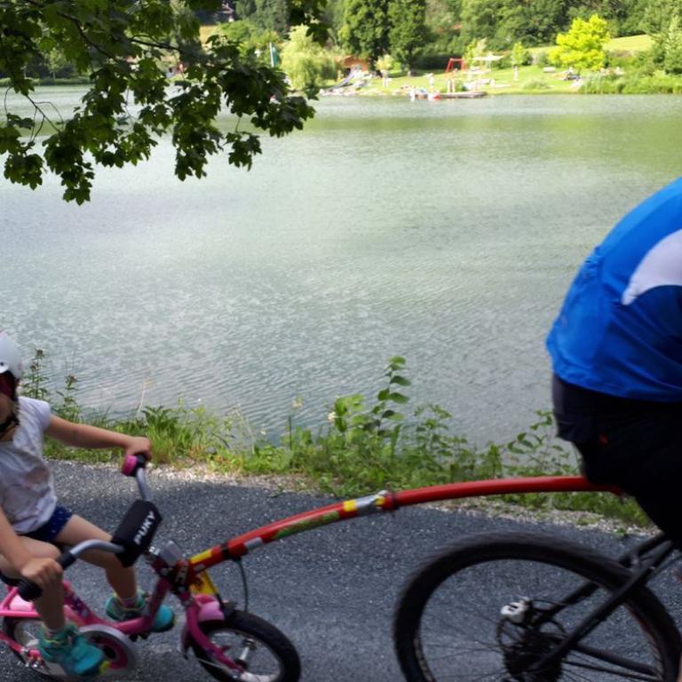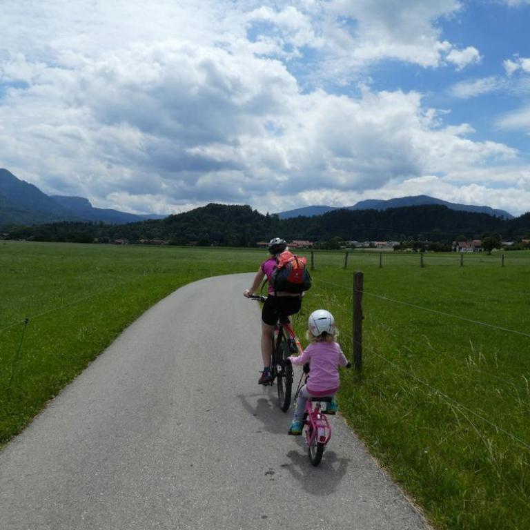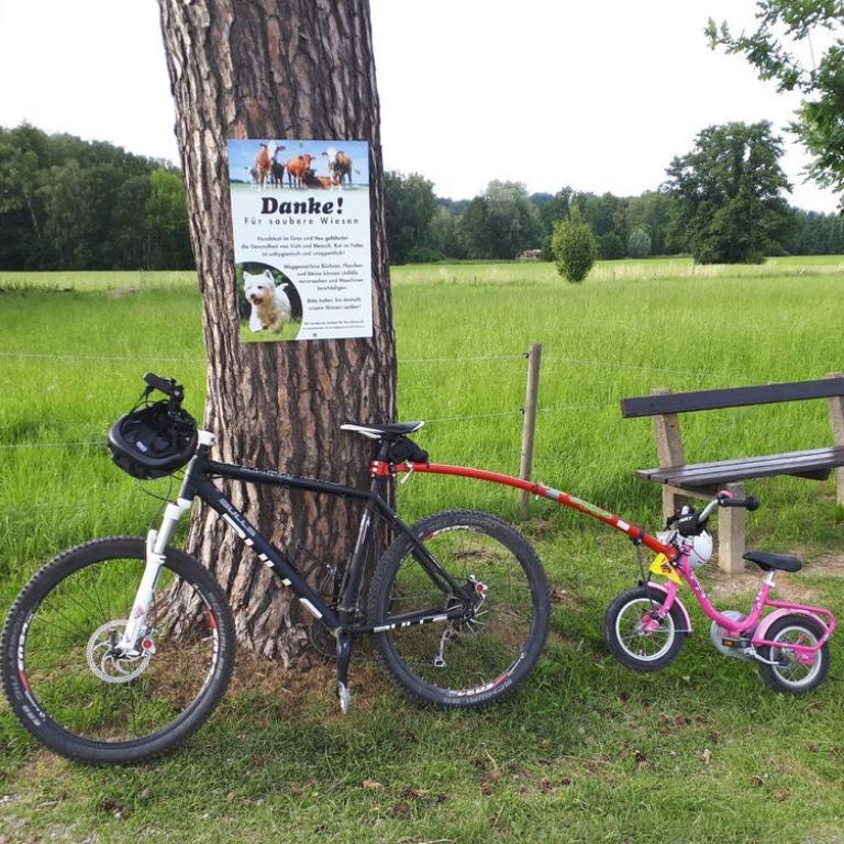 Brigitte ließen wir auf der Heimfahrt am Reifinger See raus, damit sie schwimmen konnte und wir drei ruhten ein wenig im Bett. Später fuhren Emma und ich mit dem Mountainbike durch das Grassauer Moor. Emma war begeistert von der Abschleppstange zu ihrem Radl. Sie konnte mittreten wenn sie wollte, oder auch nur die Sonne und Gegend genießen :-)