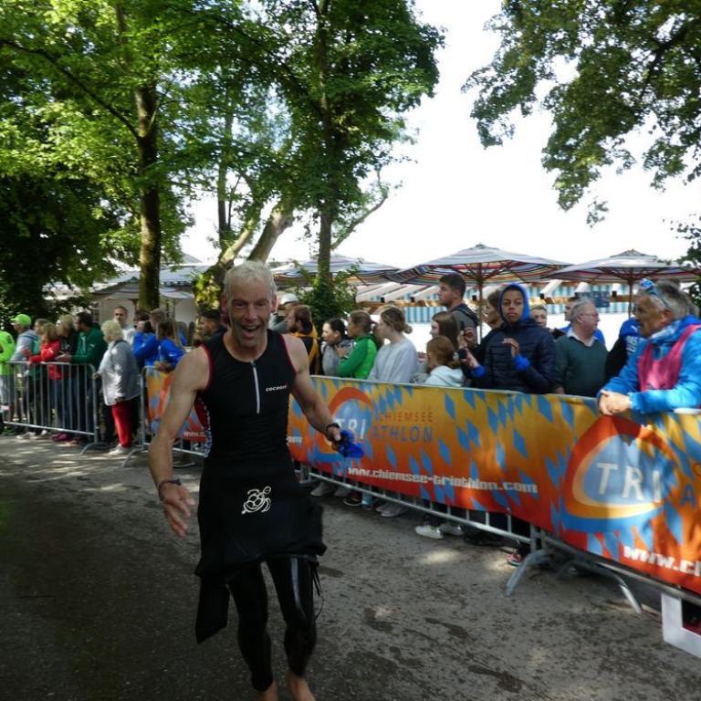 Der erste Triathlon 2018 ist angesagt. Viel mehr werden es auch nicht werden. Ok gut der Ironman Hamburg steht in 5 Wochen noch an :-) Meine Mädels und der kleine Zwerg waren auf jeden Fall fitter als ich um halb 7 Uhr morgens :-) Wir fuhren nach Chieming wo ich in der Wechselzone noch mein Bike und Wechselbeutel überprüfte. Nervös bin ich schon lange nicht mehr vor so einem Event. Meine Kumpels Woife und Mane waren auch mit am Start. Wir marschierten zum Strandbad, wo ich meine treusten und natürlich liebsten Fans Brigitte, Emma und Timi noch ein Bussi auf die Wange drückte, bevor es zum Start ging. Die Temperaturen waren ziemlich huschig, 11 Grad Außentemperatur und 19,8 Grad Wassertemperatur. Da freuten wir uns irgendwie schon fast auf den Startschuß, um ins "warme" Wasser zu kommen. Um 5 nach 9 Uhr ballerten die Böller in die Luft und wir ins Wasser. Für mich lief es super und ich kam ohne Gerangel die ersten 100 m hindurch. In den letzten beiden Wochen schwamm ich viel im Reifinger See mit Neo und das zahlte sich aus. Locker ballerte ich durch das ruhige Wasser. Entapannt stieg ich nach 34:28 Minuten, 2 km und auf dem 90. Platz aus dem Wasser. Ich war fast 2 Minuten schneller als im letzten Jahr. Für den Wechsel benötigte ich 3:28 Minuten und los ging es auf meiner schwächsten Disziplin, dem Radfahren. Klar erwartete ich etwas mehr von meinem nigel, nagel, neuen Airstreem Super TT. Ich brauchte ein paar Kilometer bis ich Fahrt aufnehmen konnte. Trotz einem teilweise 38 er Schnitt in der Geraden wurde ich immer wieder überholt. Nach 25 Kilometer kam dann eine 90 Grad Abbiegung und ich fuhr viel zu schnell hinein. Ich musste bremsen, aber der Hinterreifen rutschte weg. Ich entschied mich geradeaus in eine Wiese zu fahren. Hier hielt ich mich mit ca. 40 kmh so mit Ach und Krach auf dem Rad. Ich kam mir vor wie bei einem MTB Downhill :-) Ich ballerte durch die Wiese zurück auf die Straße und die nachfolgenden Triathleten jubelten mir zu und gratulierten zum gelungenen Stunt. Leck da ging mir die Düse :-) Ich fuhr dann doch etwas verhaltener weiter. Nachdem ich bei der Hälfte der Strecke an meiner Familie vorbeigerauscht war musste ich die erste Pinkelpause einlegen. Na toll wieder 10 Plätze verloren. In der zweiten Runde lief es an sich ganz gut, aber trotzdem wurde ich überholt und überholt. Kurz vor dem Ziel musste ich nochmals raus eine weitere Pinkelpause einlegen. Zefix das Chiemseewasser war anscheinend doch zu viel :-) Endlich war ich nach 2h 32 min 06 sec, 82 km und 850 Höhenmetern in der Wechselzone. Ich brachte es trotz eines 32,3 Schnitts nur auf einen 190. Platz im Radpart. Den Wechsel auf Lauf erledigte ich in 1 min 48 sec. Und nun konnten die Spiele beginnen: Ballern auf der 20 km Laufstrecke was das Zeug hielt. Ich krachte gleich mal in die erste Runde. Die Triathleten flogen nur so an mir vorbei und sahen nur noch meinen Rücken. Teilweise ballerte ich mit einer 3:45 er Pace durch die Reihen. Auf der ganzen Strecke wurde ich nur von 3 Triathleten und das waren Profis, unter anderem Jan Raphael überholt. Das ist meine Disziplin, das kann ich und ballerte 20 Kilometer auf der mit vielen kleinen Steigungen gespickten Strecke dahin. Brigitte, Emma und Timi gaben mir in jeder Runde noch den letzten Ruck um noch einen drauf zu setzten. Danke ihr Mäuse :-) Ich kassierte Triathlet um Triathlet ein. Schade das es nach 20 Kilometern zu Ende war, als ich nach 1h 25 min 50 sec. als Gesamt 64ter von 290 männlichen Teilnehmern und als Altersklassen 12. in einem mega stark besetztem Feld (Neef Sebi, Markus Fachbach....) ins Ziel einlief. Gesamt benötigte ich für die 2 km Swim, 82 km Bike und 20 km Run 4h 37 min 42 sec, über 5 Minuten schneller als im letztem Jahr. Was mich besonders freute war meine Laufleistung. Beim Laufpart waren nur 24 Männer vor mir und davon waren fast alle Profis. Eine 4:14 er Pace bei einer Mitteldistanz macht das möglich :-) Im Ziel erwartete mich meine Familie was mich an dem ganzem Rennen am meisten freute. Auch Woife und Mane konnten eine super Zeit verbuchen. Klar wurde das dann bei einem Weißbier gefeiert :-) Ich fuhr dann mit dem Tribike die 15 Kilometer nach Grassau zurück, während meine Mädels und Bubi mit dem Auto fuhren. Später gab es noch eine MTB - Spielplatz - Pizzeria Tour mit der Familie :-)
