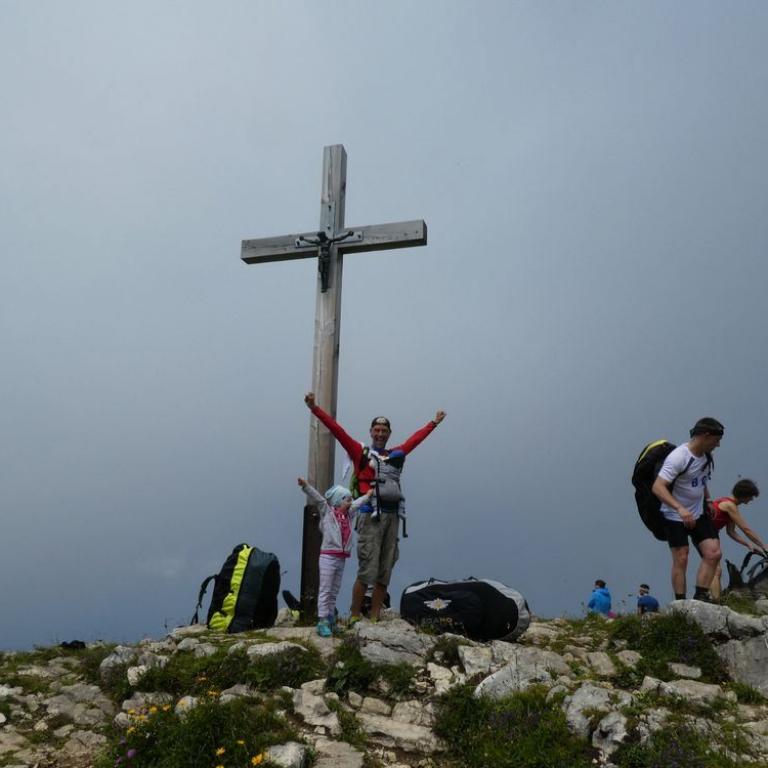 Brigitte legte eine Morgenlaufeinheit und Semmelholeinheit und ich eine Rumpfstabi und Open Water Neo Swimeinheit im Reifinger See ein. So konnte schon mal der Tag beginnen :-) Nach dem Frühstück fuhren wir nach Samerberg/Grainbach bei Frasdorf. Hier fuhren wir mit dem Sessellift zur Hochriesmittelstation. Emma durfte auf meinem Schoß fahren und war begeistert. Ab hier ging dann die Gondel bis knapp unter dem Gipfel. Eigentlich sind wir ja die Gipfelbesteiger und halten nicht viel vom Gondelfahren, aber heute wollten wir einen weiteren Gipfel neben dem Hochries besteigen und nach unten wandern. Der Hochriesgipfel 1568 m war gut besucht und viele Gleitschirmflieger tummelten sich an den Abflugplätzen. Ein nicht ganz einfacher Steig führte uns westlich des Gipfels nach unten um dann auf den Karkopf 1496 m wieder anzusteigen. Meine kleine Emma kletterte tapfer über die Steine und hinauf zum Gipfel. Hier bekam Timi sein Fläschchen und Emma ihre wohlverdiente Brotzeit :-) Wir stiegen dann bis zur Mooserbodenalm auf 950 Hm ab. Hier kehrten wir in der kleinen und gemütlichen Alm ein. Es gab Suppe, Kuchen und Radler. Da wir schon 2 1/2 Stunden gewandert waren, entschieden wir ab der Mittelstation wieder mit dem Sessellift ins Tal zu fahren. Hier stieg ich auf mein Tribike das wir im Auto mit dabei hatten und düste los. Ich legte noch eine 80 km Runde ein, bevor ich wieder in Grassau ankam, wo ich mit Emma Fußball spielte und mit Brigitte am Balkon den Abend bei einem Film und Bierchen ausklingen ließ.