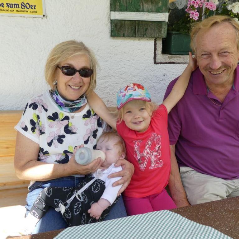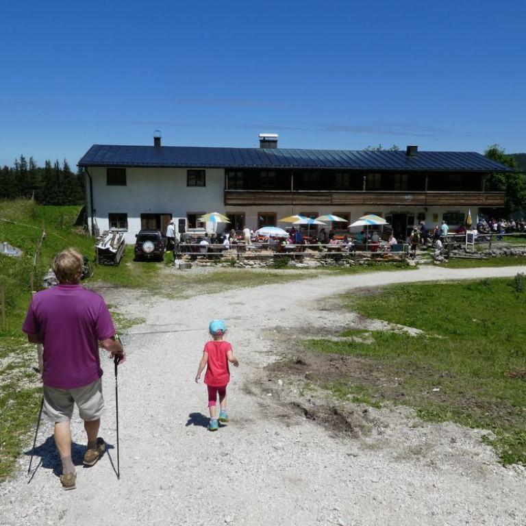 Heute kamen Oma und Opa zu Besuch was die Kinder sehr freute. Wir fuhren zusammen bei herrlichem Wetter nach Ruhpolding und von dort zur Steinbergalm. Hier starteten wir unsere Wanderung bis zur Mittelstation der Hochfellnseilbahn. Mit dieser fuhren wir bis zur Bergstation. Wir stiegen dann auf den aussichtsreichen aber auch überfüllten Hochfellngipfel 1674 m. Von hier wanderten wir den kleinen Steig bis zur Öderkaseralm hinunter. Bei Sonne und blauem Himmel genossen wir Weißbier, Radler und Brotzeitteller. Später wanderten wir wieder zurück zum Parkplatz. Insgesamt waren wir 2 1/2 Wanderstunden unterwegs. Opa und Oma fuhren wieder nach Hause und wir nach Grassau zurück.