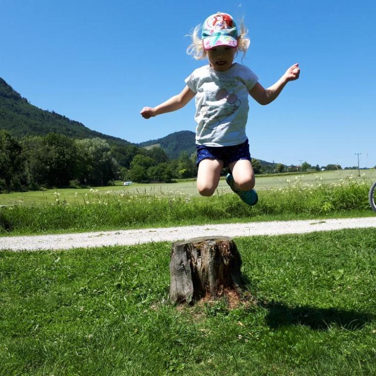 Erst um halb 8 kämpften wir uns aus den Betten im Hochgernhaus. Nach dem Frühstück liefen wir auf coolen Trails bis Marquartstein und weiter nach Grassau. Die Zwerge freuten sich als wir ankamen. Später fuhren wir mit Omi, Opa und den Kindern mit dem Rad durchs Grassauer Moor und zum Spielplatz. Nach einer Ruhepause ging es nach Traunstein in den Babalu Indoorkinderpark, wo sih Emma austoben konnte. Da wir diese Nacht zu sechst in der kleinen Grassauer Wohnung waren, wanderten Emma und ich auf den Dachboden aus. Wir machten es uns kuschelig mit Schlafsack und Decken. Wir schauten zusammen am Tablet Kinderfilme an, bis wir müde wurden :-)