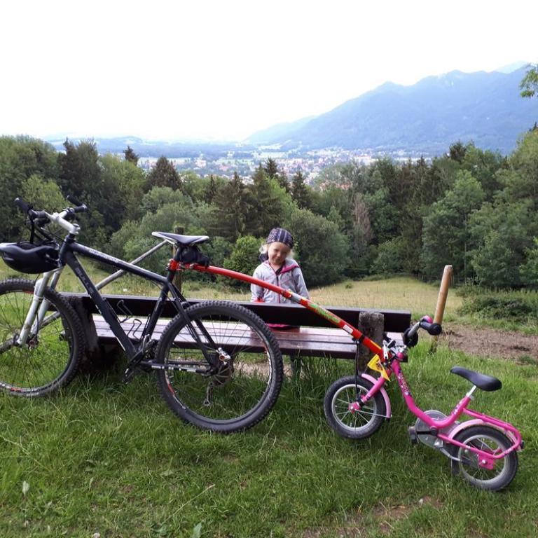 Am Morgen startete Brigitte mit einer Laufeinheit zum Bäcker und die Zwerge und ich legten eine Rumpfstabi und Frühstückherrichteinheit ein. Später ballerte ich mit dem Tribike los. Einmal um den Chiemsee, dem bayerischen Meer. Für die 60 Kilometer benötigte ich 1h 51 min. Dann machte ich noch die Umgebung von Grassau unsicher und kam auf knappe 100 km. Am Nachmittag fuhren wir in das Spieleparadies Babalu bei Traunstein. Emma und auch Papa und Mama sausten durch die Parcours. Zuhause testeten Emma und ich eine Abschleppstange fürs Kinderrad. Befestigt am Mountainbike sausten wir über den Grassauer Golfplatz und genossen die Sonne und das schöne Abendwetter, bevor wir dann den Abend bei einer "gscheitn" Brotzeit ausklingen ließen.