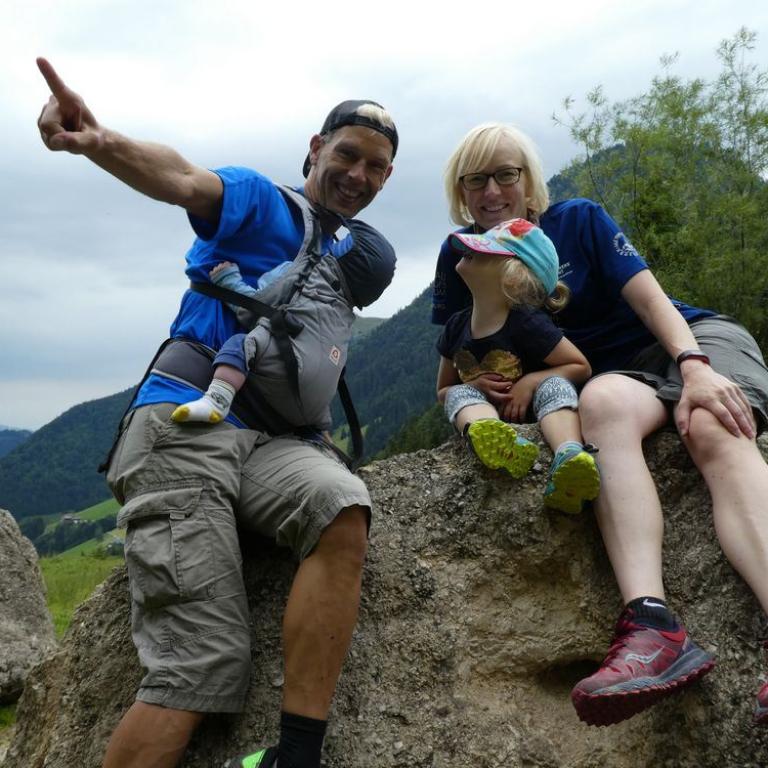 Den Tag startete ich mit einer ausgiebigen Rumpfstabieinheit auf unserem Balkon. Die Sonne begrüßte mich schon freundlich. Zusammen ließen wir uns das Frühstück schmecken, bevor wir zum Fetznhof zu den Tichys ein paar hundert Meter weiter aufbrachen. Wir fuhren zusammen zum Parkplatz Strehtrumpf oberhalb Grassau. Das Wetter hielt noch super und wir wanderten bis zur Hefteralm. Johanna und Emma marschierten fleißig selbst und die kleine Julia saß in Papas Kraxn und Timi in der Bauchtrage bei Brigitte. Die Alm war schon gut besucht und wir genossen Kaiserschmarrn, Würstlsuppe und auch ein Weißbier durfte nicht fehlen. Wir gingen dann weiter ein Stück nach oben und über die Grassauer Almlandschaft bis zur Rachlalm. Von hier führte ein cooler Trail bergab, wo wir mit den Mädels laufend runter ballerten. Johanna und Emma haben das Trailrunning im Blut :-) Später fuhren die Mädels mit den Kindern zum Fetznhof zurück und Christoph und ich liefen die 4 km. Am Abend gingen wir noch gemütlich alle zusammen zum Essen. Morgen werden die Tichys mit dem Wohnmobil weiter gen Frankreich aufbrechen. Immer wieder schön mit ihnen was zu unternehmen :-)