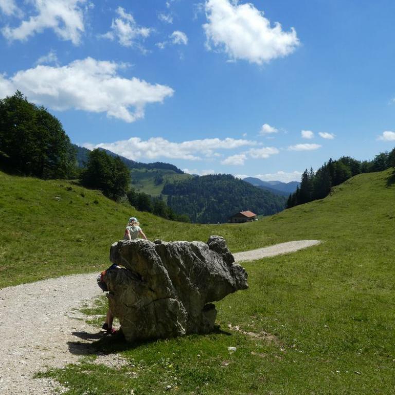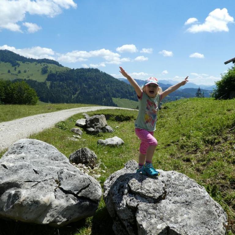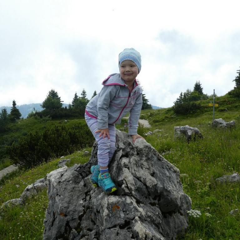 Erst Mittag kamen wir in die Gänge, bzw. die Zwerge waren schon wieder müde :-) Ich ballerte mit dem MTB zum Walchsee. Brigitte und die Kinder kamen mit dem Auto und somit konnten wir gemeinsam unsere Wanderung zur Ottenalm starten. Wir gingen die 300 Hm auf dem Forstweg zur Alm, wo Emma auf Felsen kletterte und natürlich durfte auch eine Brotzeit nicht fehlen. Zurück in Grassau fuhren Emma und ich mit dem MTB zum Wanderparkplatz der Grassauer Almen. Leck die 200 Hm mit Emma an der Stange waren ganz schön anstrengend :-)