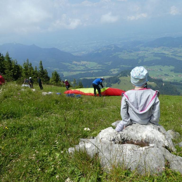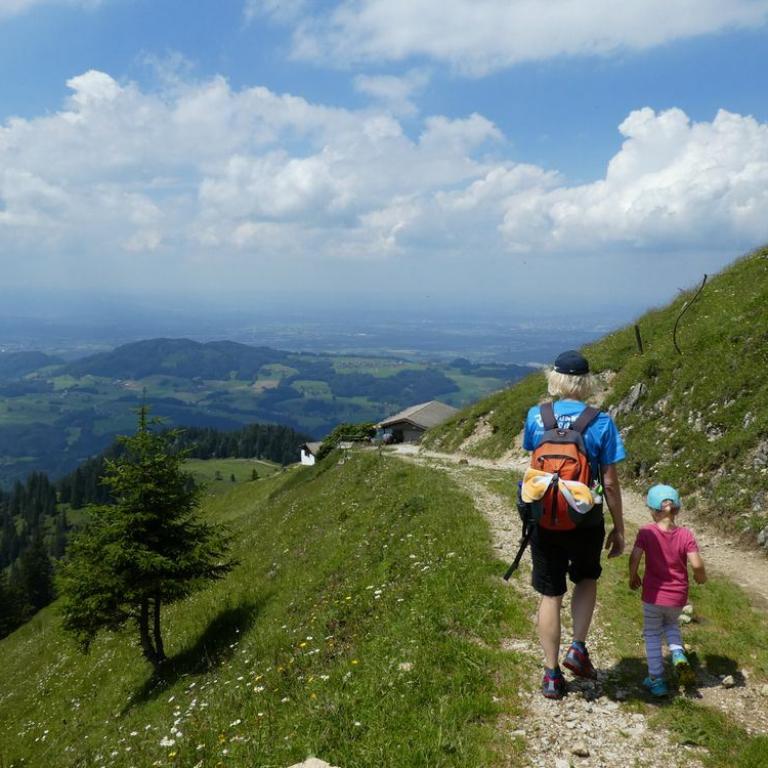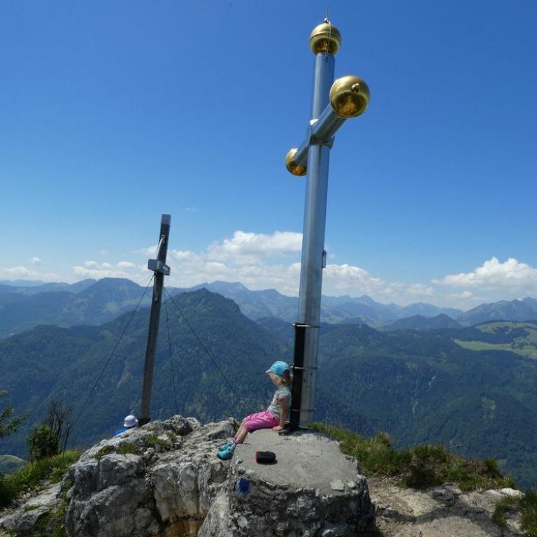 Heute kamen Oma und Opa zu Besuch was die Kinder sehr freute. Wir fuhren zusammen bei herrlichem Wetter nach Ruhpolding und von dort zur Steinbergalm. Hier starteten wir unsere Wanderung bis zur Mittelstation der Hochfellnseilbahn. Mit dieser fuhren wir bis zur Bergstation. Wir stiegen dann auf den aussichtsreichen aber auch überfüllten Hochfellngipfel 1674 m. Von hier wanderten wir den kleinen Steig bis zur Öderkaseralm hinunter. Bei Sonne und blauem Himmel genossen wir Weißbier, Radler und Brotzeitteller. Später wanderten wir wieder zurück zum Parkplatz. Insgesamt waren wir 2 1/2 Wanderstunden unterwegs. Opa und Oma fuhren wieder nach Hause und wir nach Grassau zurück.