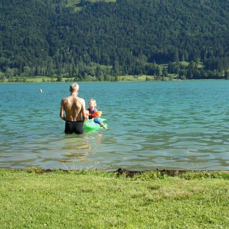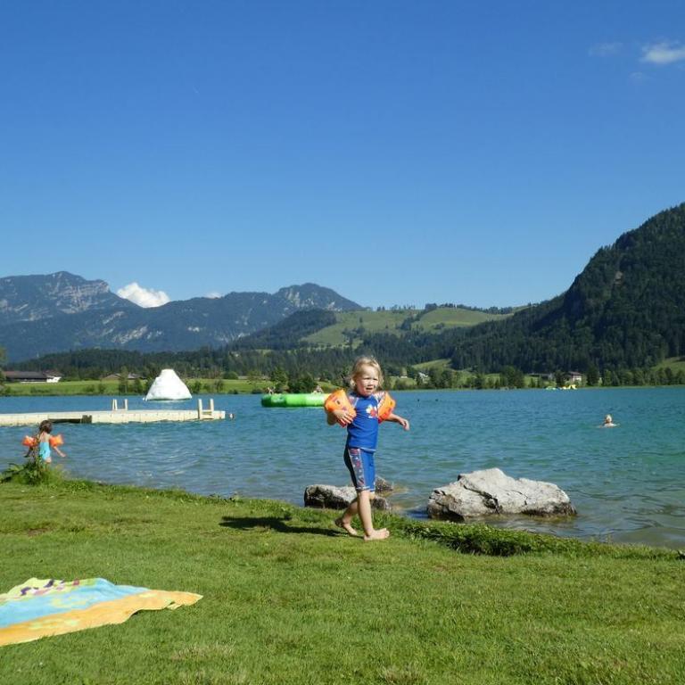 Nach unserem Gipfelerfolg fuhren wir noch zum traumhaft, gelegenen Walchsee. Hier planschten wir noch im klaren Wasser, bevor die Mäuse mit dem Auto nach Grassau zurück fuhren und ich mit dem Tribike über Sachrang zurück ballerte :-)
