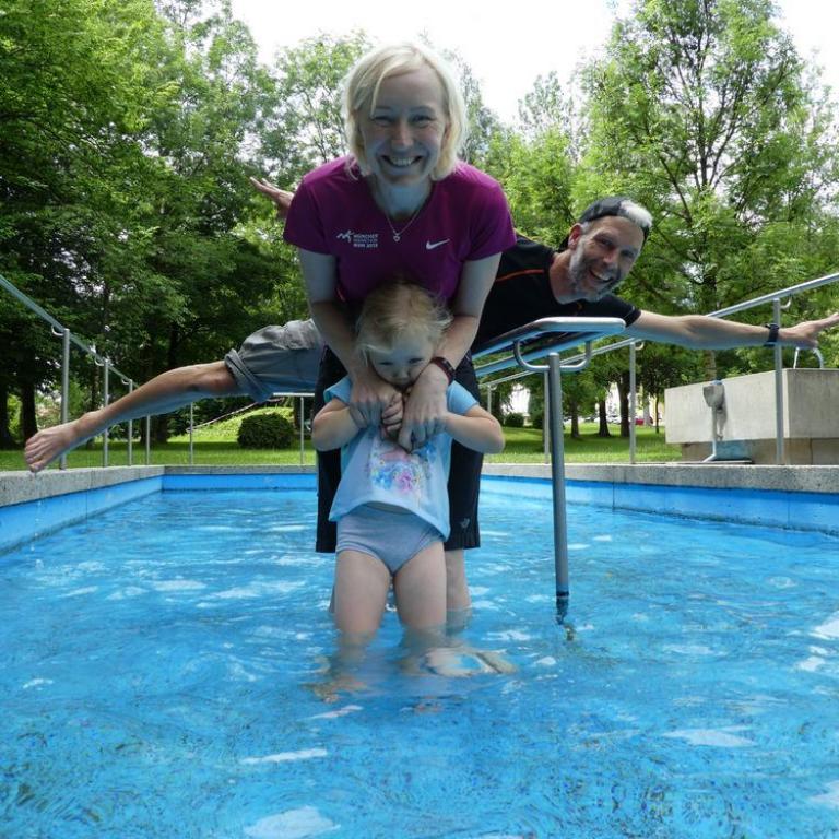 Die kleine Maus und Mama holten zum Frühstück per Rad Semmeln und Timi und ich machten derweil Rumpfstabiübungen. Später gingen wir noch zum Einkaufen um den Grassauer Kühlschrank aufzufüllen. Ich kämpfte eine Zeitlang mit der Internetverbindung, bevor ich nach verlorenem Kampf zu einer kleinen abreagier Tribikerunde aufbrechen konnte :-). Am Nachmittag besuchten uns unsere Freunde, die Tichys, wo wir zusammen am Reifinger See baden gingen. Später fuhren wir noch gemeinsam in die Grassauer Pizzeria zum Abendessen.