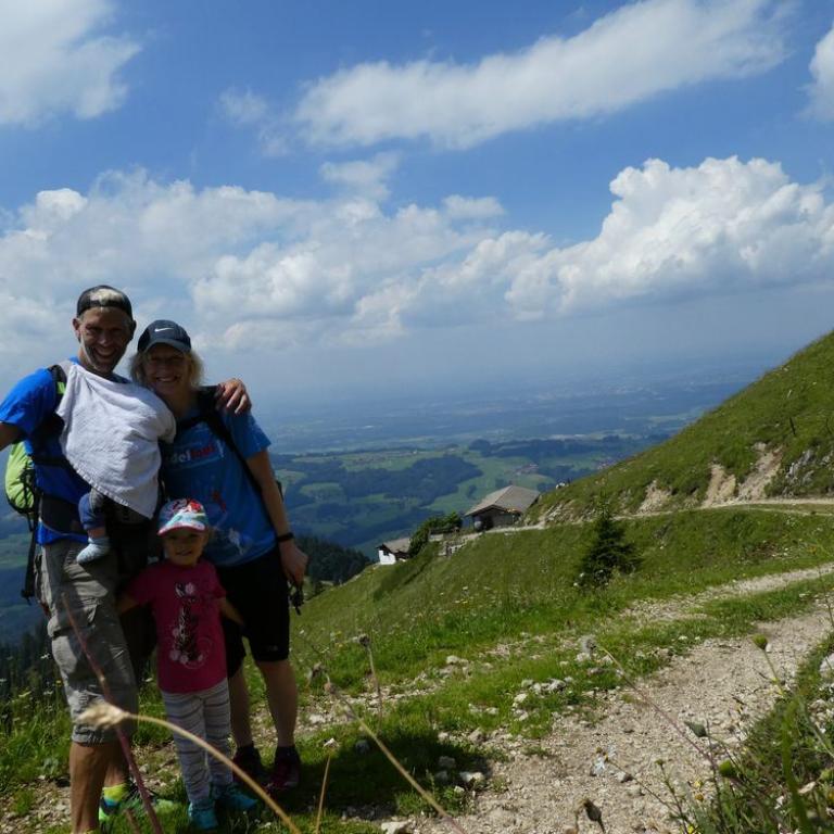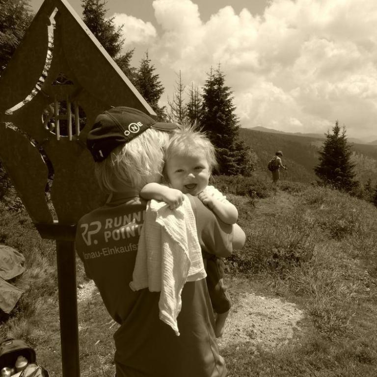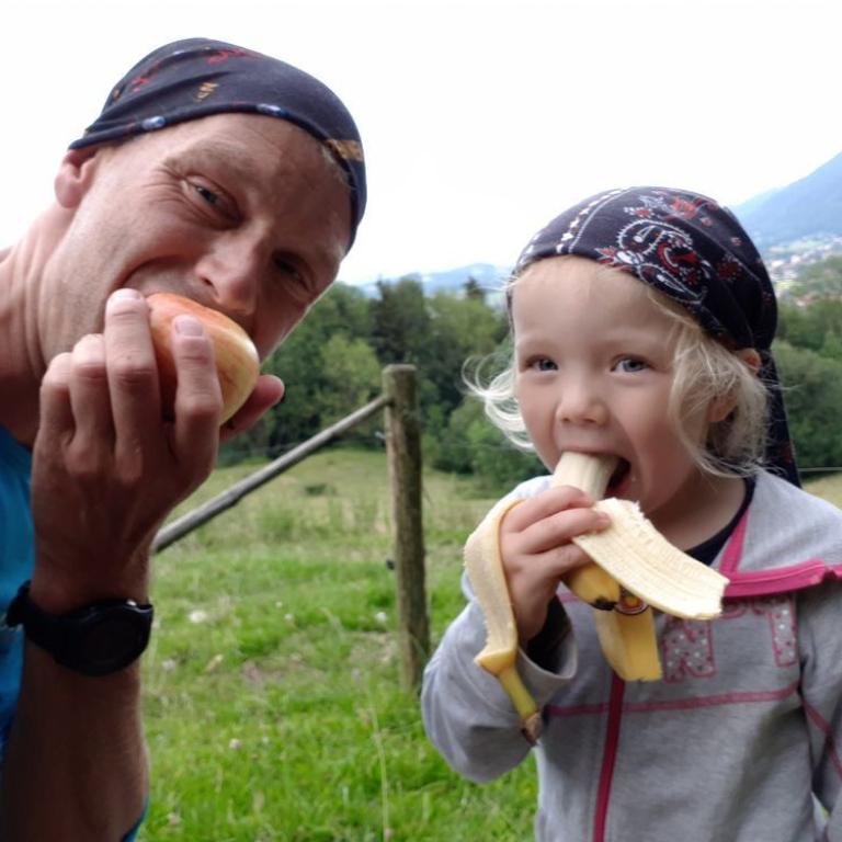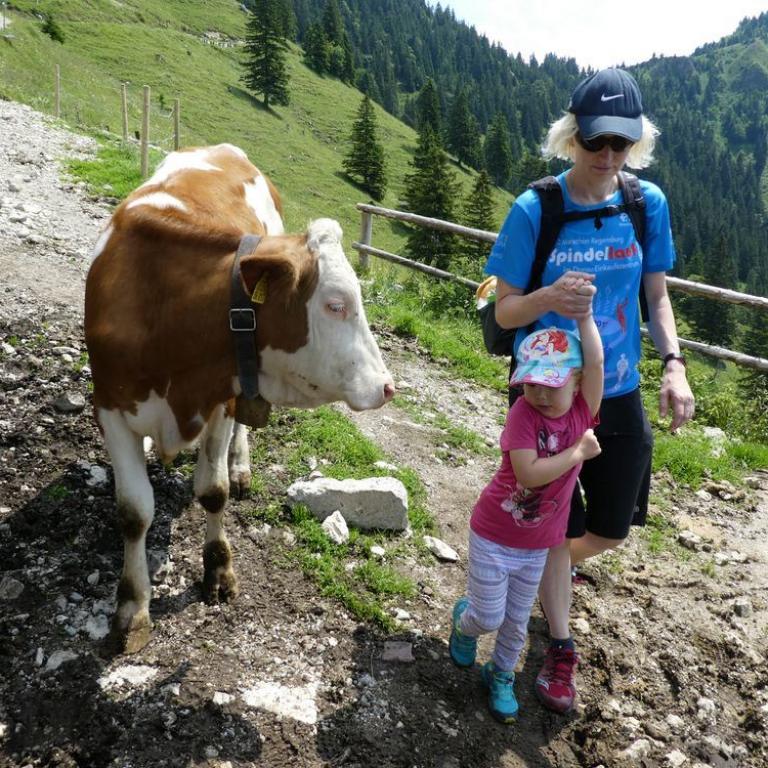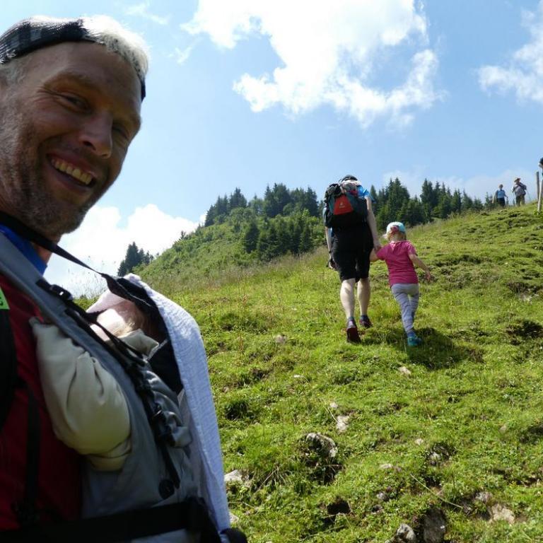 Den Tag startete ich mit einer ausgiebigen Rumpfstabieinheit auf unserem Balkon. Die Sonne begrüßte mich schon freundlich. Zusammen ließen wir uns das Frühstück schmecken, bevor wir zum Fetznhof zu den Tichys ein paar hundert Meter weiter aufbrachen. Wir fuhren zusammen zum Parkplatz Strehtrumpf oberhalb Grassau. Das Wetter hielt noch super und wir wanderten bis zur Hefteralm. Johanna und Emma marschierten fleißig selbst und die kleine Julia saß in Papas Kraxn und Timi in der Bauchtrage bei Brigitte. Die Alm war schon gut besucht und wir genossen Kaiserschmarrn, Würstlsuppe und auch ein Weißbier durfte nicht fehlen. Wir gingen dann weiter ein Stück nach oben und über die Grassauer Almlandschaft bis zur Rachlalm. Von hier führte ein cooler Trail bergab, wo wir mit den Mädels laufend runter ballerten. Johanna und Emma haben das Trailrunning im Blut :-) Später fuhren die Mädels mit den Kindern zum Fetznhof zurück und Christoph und ich liefen die 4 km. Am Abend gingen wir noch gemütlich alle zusammen zum Essen. Morgen werden die Tichys mit dem Wohnmobil weiter gen Frankreich aufbrechen. Immer wieder schön mit ihnen was zu unternehmen :-)