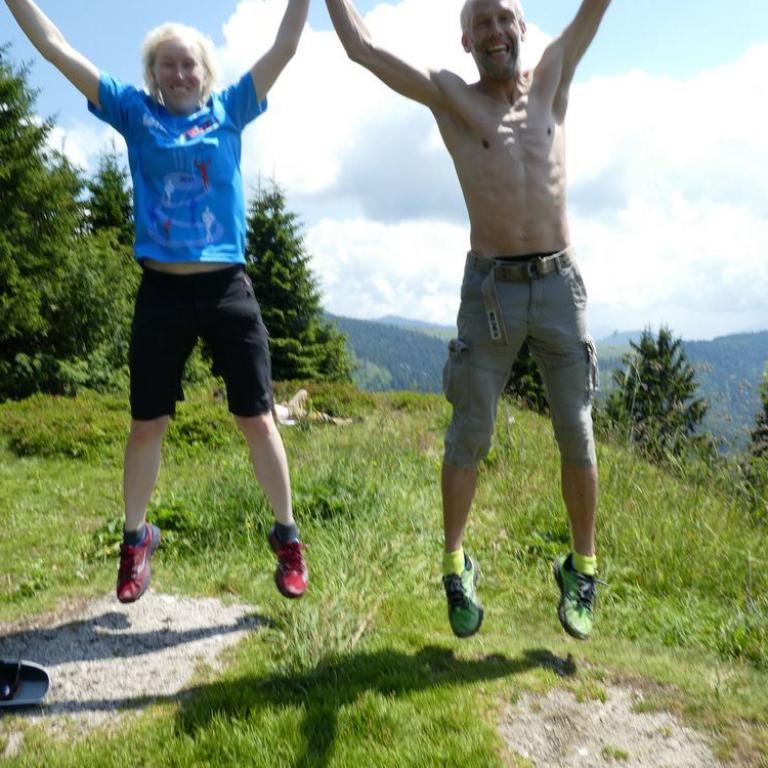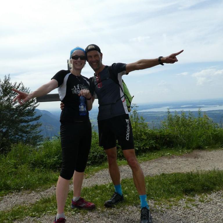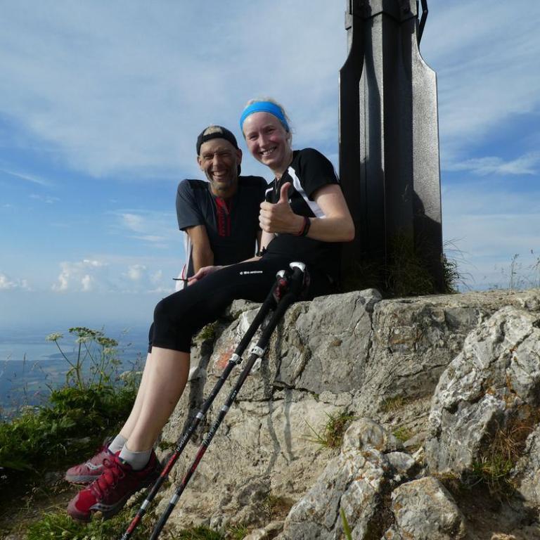 Am späten Nachmittag starteten Brigitte und ich zum Trailrun auf den Hochgern über die Schnappenkapelle. Die Mäuse blieben bei Omi und Opa in Grassau. Wir ballerten Höhenmeter um Höhenmeter nach oben. Brigitte war super drauf und nach 1h 55 min und 1300 Hm standen wir auch schon auf dem Gipfel des Hochgerns. Brigitte war 6 Minuten schneller als im letzten Jahr. Respekt sau stark meine Frau. Das Wetter war traumhaft und der Ausblick herrlich. Wir liefen dann weiter zum Hochgernhaus auf 1400 m, wo wir Grillfleisch und eine Radler bekamen. Hier genossen wir einen gemütlichen Hüttenabend, bevor wir im Zimmerlager übernachteten.
