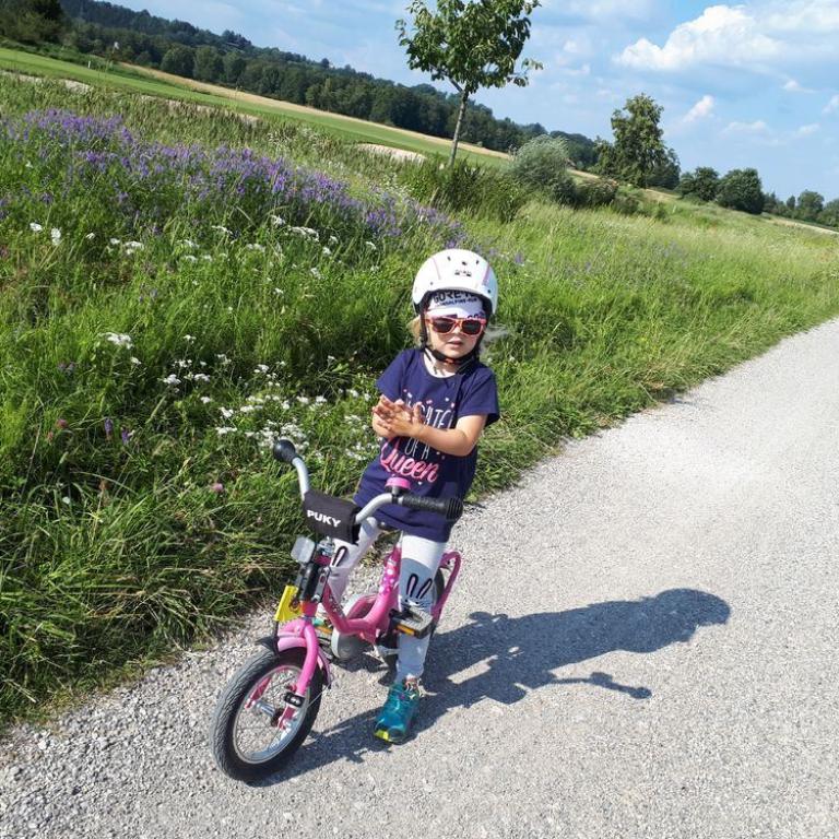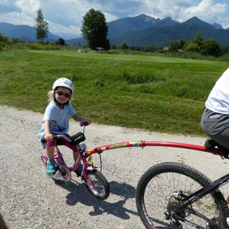 Brigitte ließen wir auf der Heimfahrt am Reifinger See raus, damit sie schwimmen konnte und wir drei ruhten ein wenig im Bett. Später fuhren Emma und ich mit dem Mountainbike durch das Grassauer Moor. Emma war begeistert von der Abschleppstange zu ihrem Radl. Sie konnte mittreten wenn sie wollte, oder auch nur die Sonne und Gegend genießen :-)