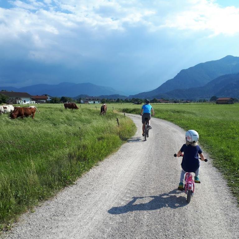 Erst um halb 8 kämpften wir uns aus den Betten im Hochgernhaus. Nach dem Frühstück liefen wir auf coolen Trails bis Marquartstein und weiter nach Grassau. Die Zwerge freuten sich als wir ankamen. Später fuhren wir mit Omi, Opa und den Kindern mit dem Rad durchs Grassauer Moor und zum Spielplatz. Nach einer Ruhepause ging es nach Traunstein in den Babalu Indoorkinderpark, wo sih Emma austoben konnte. Da wir diese Nacht zu sechst in der kleinen Grassauer Wohnung waren, wanderten Emma und ich auf den Dachboden aus. Wir machten es uns kuschelig mit Schlafsack und Decken. Wir schauten zusammen am Tablet Kinderfilme an, bis wir müde wurden :-)