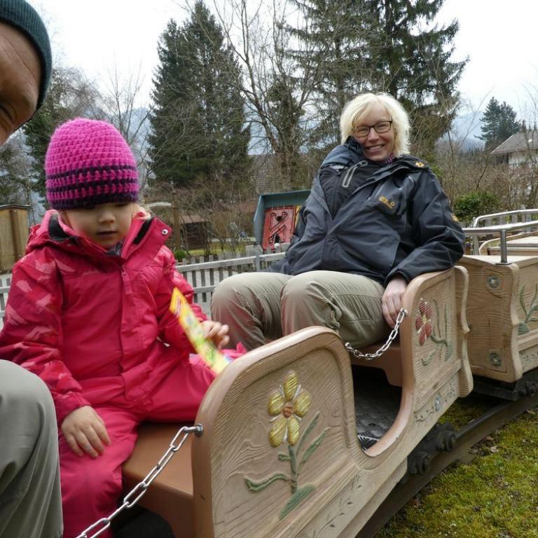 Das Wetter war leider nicht mehr optimal, aber für einen Besuch im Marquartsteiner Märchenpark passte es noch. Wir fuhren mit der kleinen Bahn, der Schnecke, sprangen Trampolin, besuchten das Hexenhaus, rutschten und im Anschluss aßen wir zu Mittag im Restaurant gegenüber. Am Nachmittag regnete es und ich fuhr nach Prien und legte eine 3,2 km Schwimmeinheit in der Priener Therme ein. Schwimmen ging, aber leider hob ich am Vormittag Emma im Märchenpark falsch an, so das ich mir den Rücken verrissen hatte. Hoffentlich wird das wieder besser...