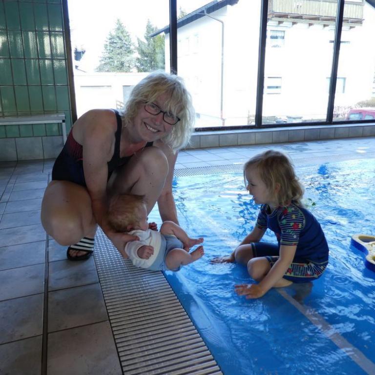 Auch heute war das Wetter ziemlich besch... :-) Vor dem Frühstück lief ich eine Regenrunde durch das Grassauer Moor und Golfplatz und holte auch gleich Semmeln und frisches Brot. Später fuhren wir nach Traunstein, wo es einen klasse Indoorspielplatz, den Babalu für Emma gab. Es machte uns riesig Spaß durch die ganzen Hindernisse zu kraxeln, zu rutschen und Trampolin zu springen. Am späten Nachmittag fuhren wir noch zur Priener Therme, wo wir im Wasser planschten und natürlich auch eine Schwimmeinheit einlegten. Am Abend fielen wir alle müde ins Bett...