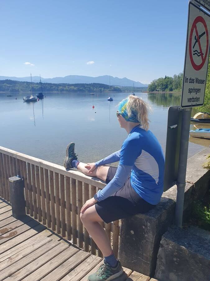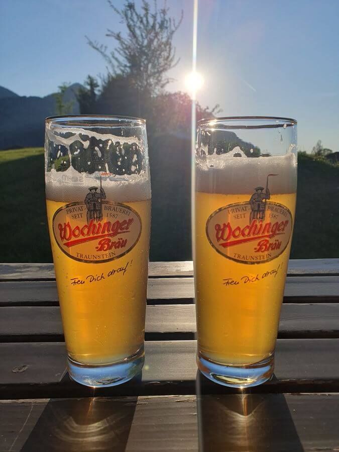 Brigitte und ich brachten unsere Mäuse zunächst zu Opi und Omi und fuhren anschließend weiter nach Grassau. Dort bezogen wir unsere gemütliche Wohnung, packten aus und schlüpften gleich in die Laufklamotten. Auf der Bahn am Fußballplatz drehten wir ein paar entspannte Runden – bei traumhaftem Wetter. Nach der wohlverdienten Dusche radelten wir weiter zum Reifinger See, wo wir in der Seewirtschaft eine Kleinigkeit aßen und ein kühles Bierchen in der Sonne genossen.