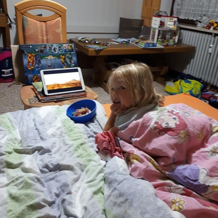 Da ich Versprechen immer halte, und dies war eines, fuhr ich mit meiner kleiner Emma, trotz Schmuddelwetter nach Grassau. Aber wir wollten es uns ganz gemütlich machen. Ich holte am Freitag Emma von der Schule und Timi vom Kindergarten ab. Timi durfte zur Omi, Brigitte war mit einer Freundin beim Wellnessen und Emma und ich fuhren bei strömendem Regen nach Grassau :-) Wir gingen als erstes in die Bernauer Therme zum Baden. Dank Corona Virus war das kleine Bad kaum besucht und wir hatten das Becken fast für uns alleine. Am Abend machten wir es uns gemütlich in der kleinen Ferienwohnung, bei Gummibärchen und einem lustigen Kinofilm (Der Schuh des Manitu). Samstag schliefen wir lange und gingen nach den Hausaufgaben ins Grassauer Cafe zum Frühstücken. Emma bekam dann Legos von Ninjago, die wir auch gleich zusammen aufbauten. Am Abend hatte ich eine Überraschung für die kleine Maus. Wir fuhren nach Prien und gingen in das urige "Mike`s Kino", wo wir " Max und die wilde 7" ansahen...
