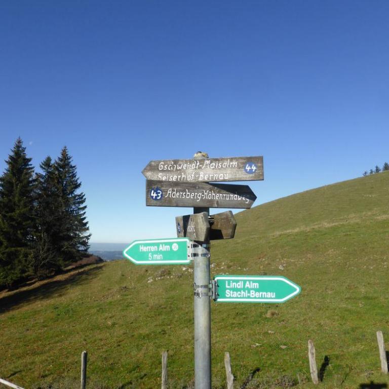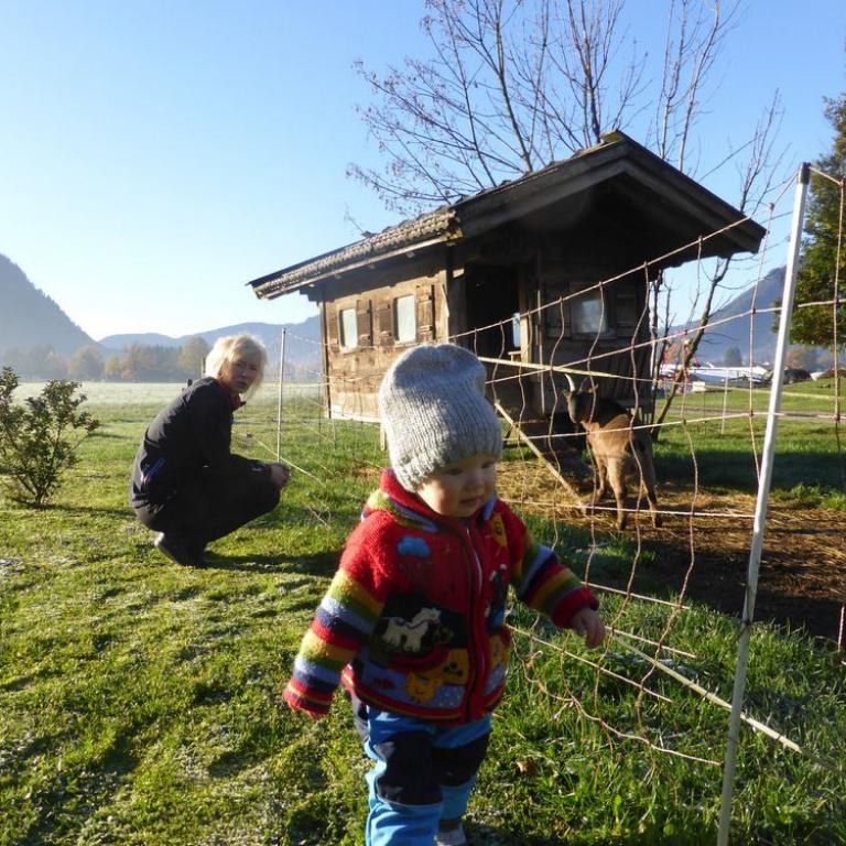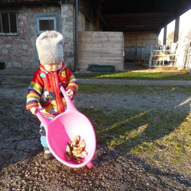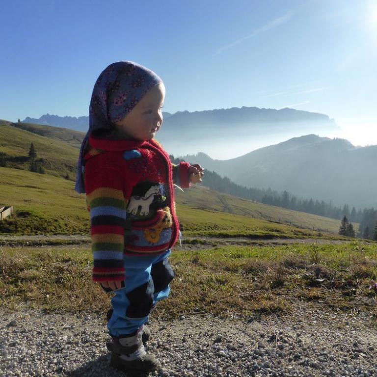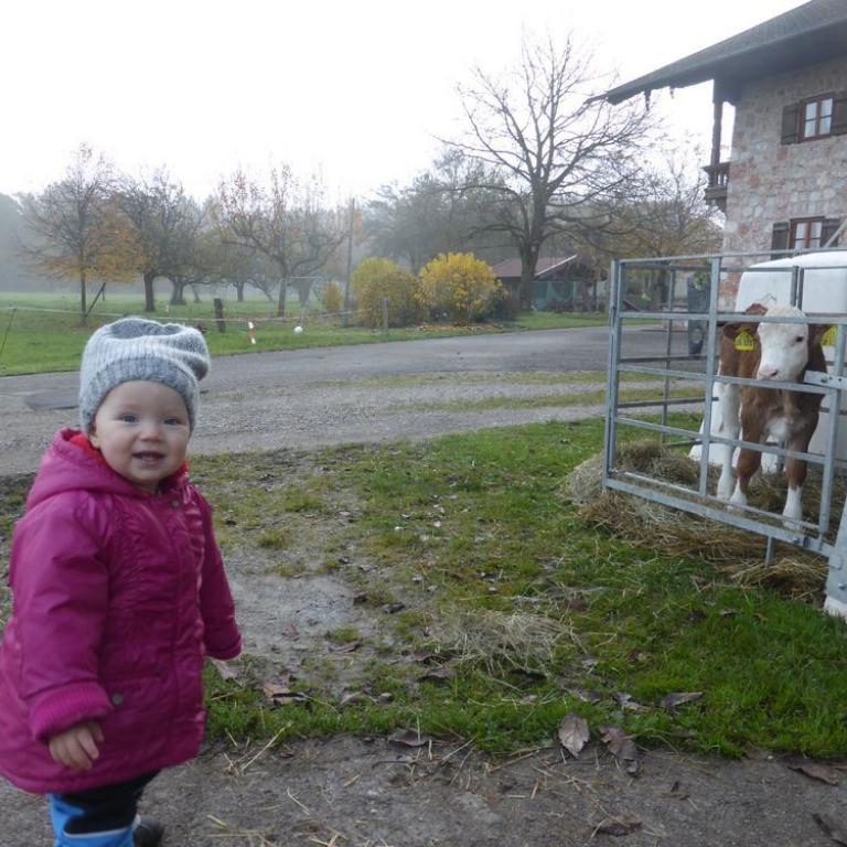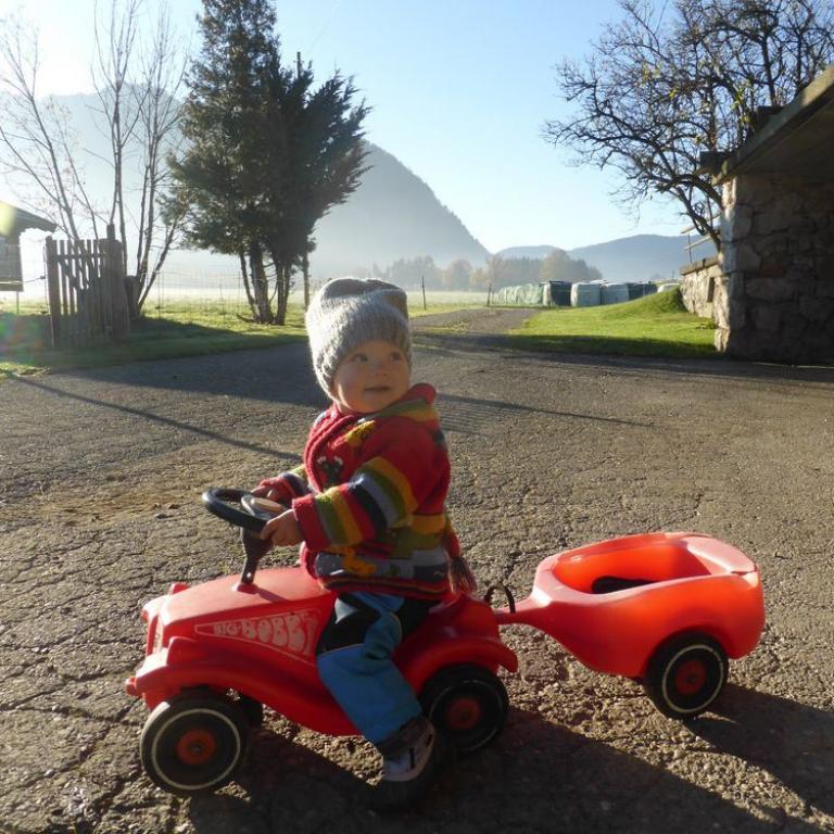 Schon früh waren wir auf unserem Bauernhof unterwegs. Emma jagte die jungen Katzen, streichelte die Kälbchen und wühlte im Sandkasten. Für unsere kleine Maus ein Paradies. Die Sonne schien schon herrlich, aber es war noch ziemlich eisig. In der Nacht fielen die Temperaturen unter den Gefrierpunkt. Wir packten unsere Sachen ins Auto und besuchten Emma`s Opa und Oma 300 m vom Hof entfernt. Zusammen fuhren wir auf den Adersberg, wo wir mit Emma in der Kraxn einen gemütlichen Panoramaweg gingen. Unser höchstes Ziel war die Lindalm mit ihren 981 m. Nach knapp über 1 Stunde Wanderung erreichten wir wieder den Parkplatz. Wir verabschiedeten uns dann von meinen Eltern und machten uns wieder auf den Nachhauseweg.