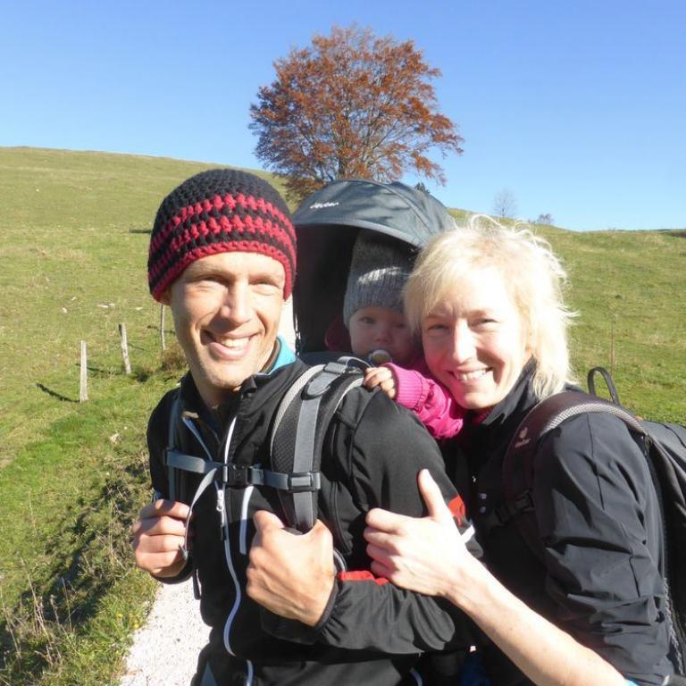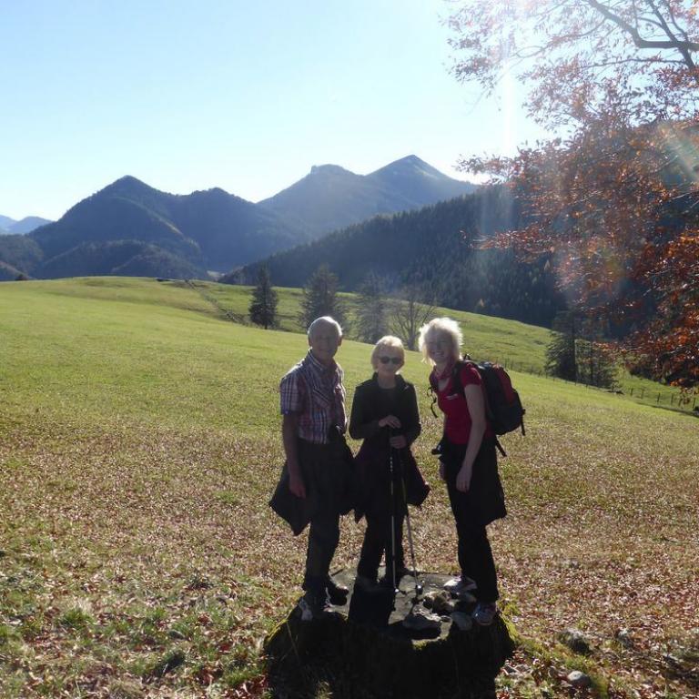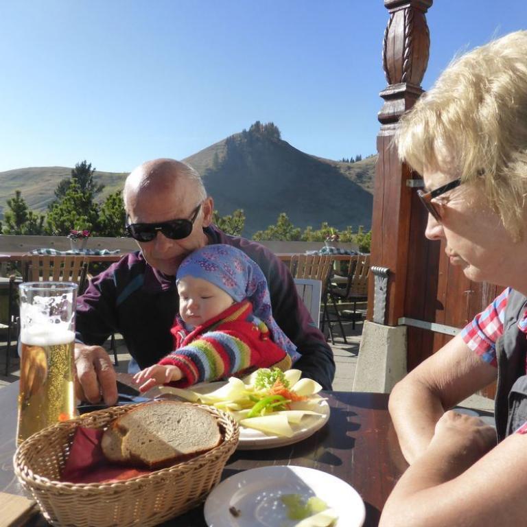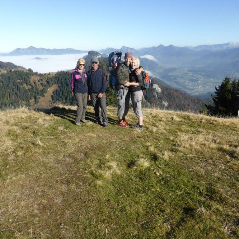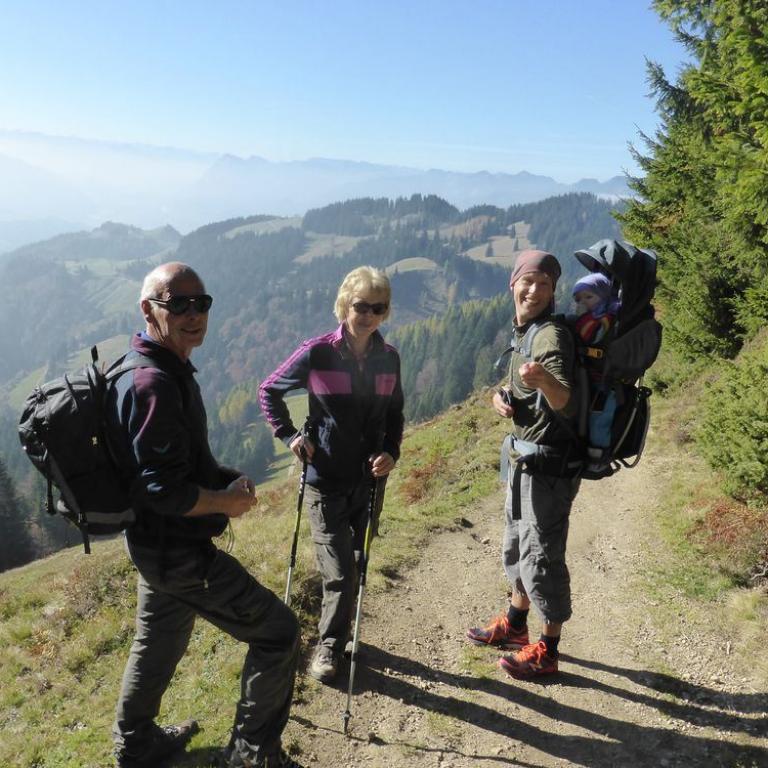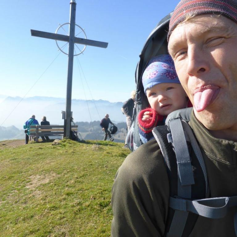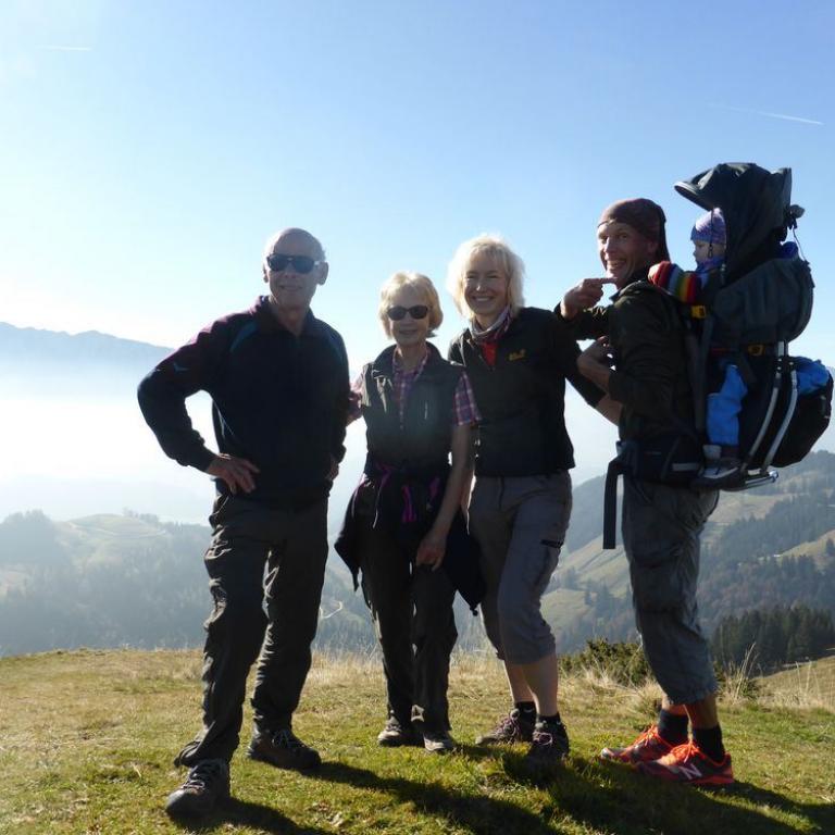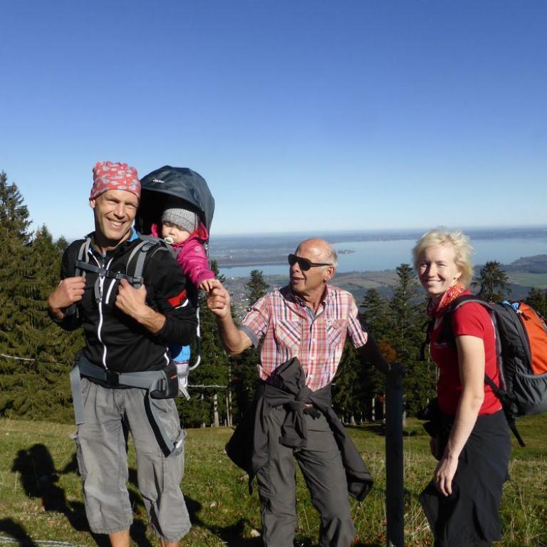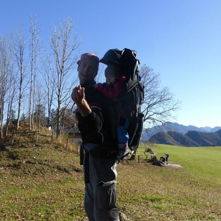 Von hier wanderten wir weiter auf den Gipfel des Lochner Horns mit seinen 1448 m. Diesen Gipfel verschlief Emma in der Kraxn. Auf gleichem Weg ging es dann wieder zurück zur Hütte. Von dort stiegen wir über die Fahrstraße wieder bis zum Parkplatz ab. Spätnachmittag fuhren wir dann wieder in Richtung Unterkunft, wo wir in Sachrang in einem gemütlichem Wirtshaus zu Abend aßen und die herrliche Wanderung Revue passieren ließen :-)