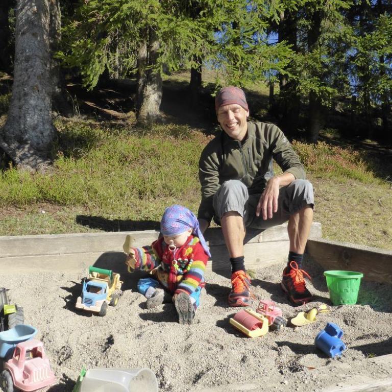 Brigitte ging nach dem Frühstück laufen und Emma und ich besuchten ihren Opa und Oma. Später fuhren wir alle dann über den Walchsee nach Rettenschöss und von dort weiter zum Parkplatz "Schöne Aussicht". Nach einer gebührenpflichtigen Schranke fuhren wir noch weiter einen Forstweg nach oben, bis wir dann unser Auto auf einem kleinen Parkplatz abstellten. Bei traumhaftem Wetter wanderten wir zuerst eine Forststraße nach oben. Die letzen 100 Hm führte uns ein Steig auf den Gipfel des Wandberges mit seinen 1454 m. Emma durfte zuerst selbst gehen, wollte aber relativ schnell in die Kraxn :-) In der Wandberghütte kehrten wir ein und aßen einen leckeren Kaiserschmarrn.